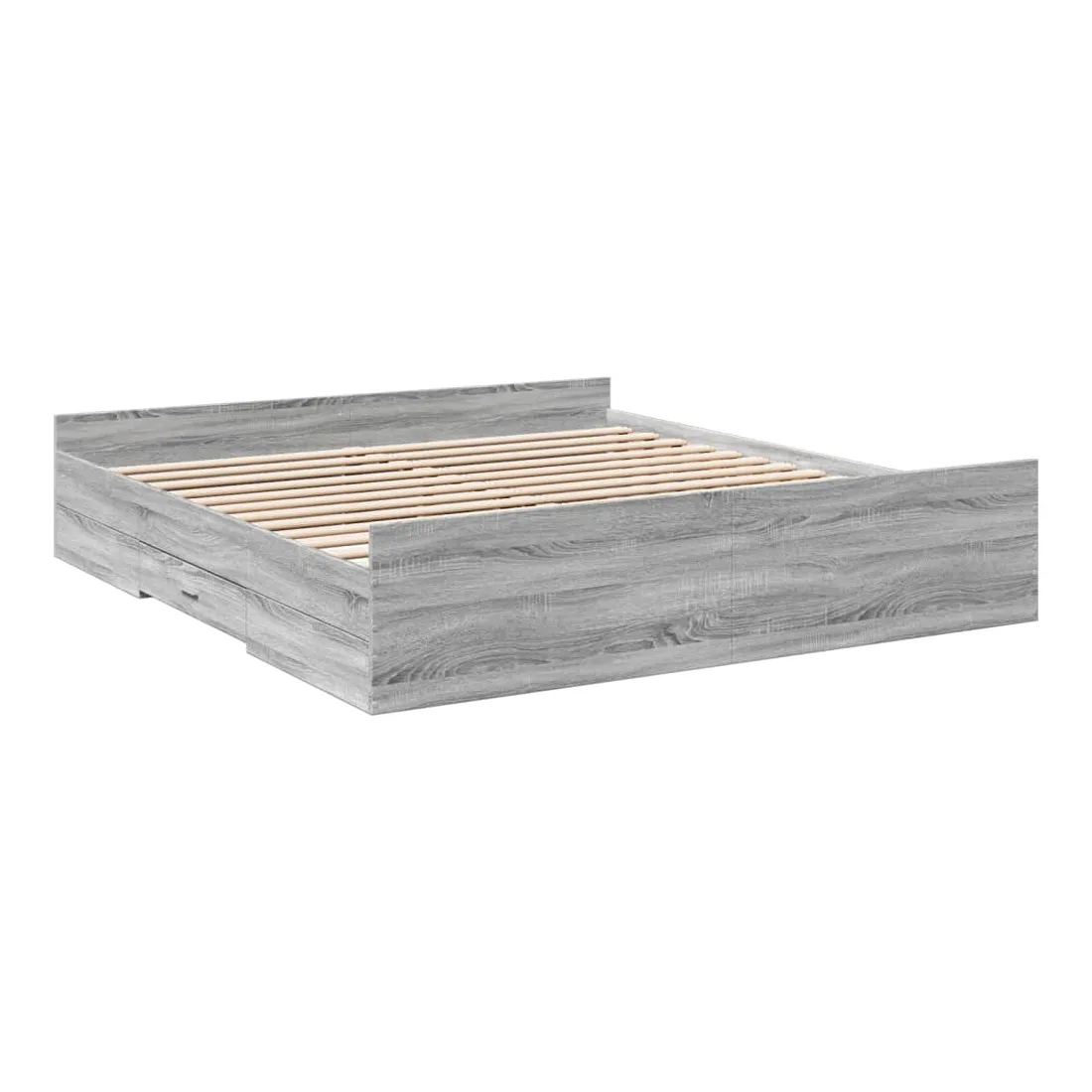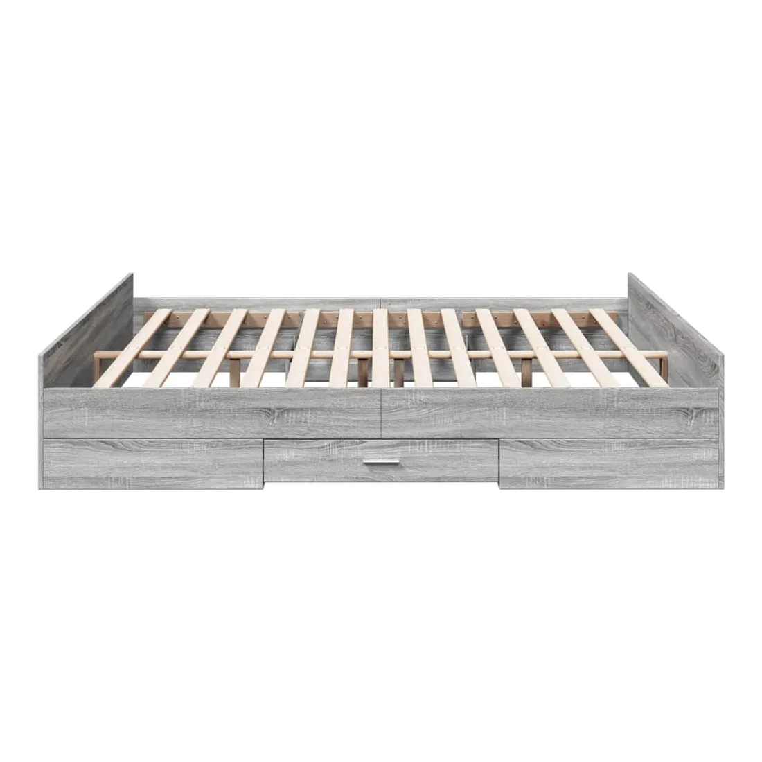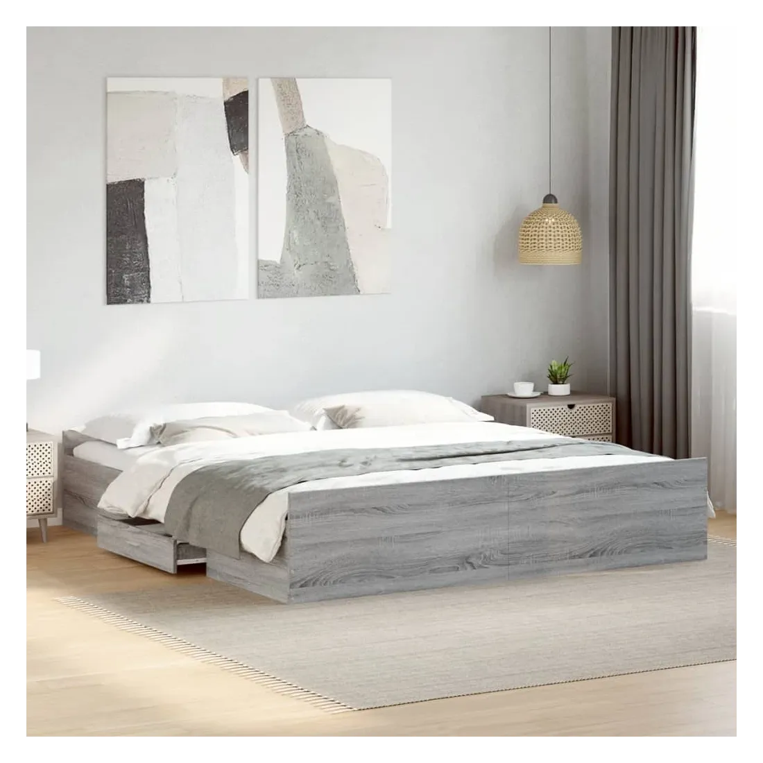 Ajoutez une touche moderne à votre chambre à coucher avec ce cadre de lit avec tiroirs ! Il apportera une touche pratique et décorative à votre espace de vie. Matériau durable : le cadre de lit est fabriquée en bois d'ingénierie. Le bois d'ingénierie est d'une qualité exceptionnelle avec une surface lisse et présente également de la résistance, de la stabilité et de la résistance à l'humidité.Lattes robustes : les lattes de contreplaqué assurent une bonne répartition du poids, garantissant que le matelas reste en place à chaque torsion de votre corps pendant le sommeil.Fonction de rangement : les tiroirs de lit inclus offrent suffisamment d'espace de rangement pour ranger vos articles essentiels, gardant votre pièce propre et bien rangée. Bon à savoir :Un matelas n'est pas inclus avec ce lit. Nous offrons une sélection variée de matelas. Vous pouvez consulter notre boutique pour trouver un matelas assorti.