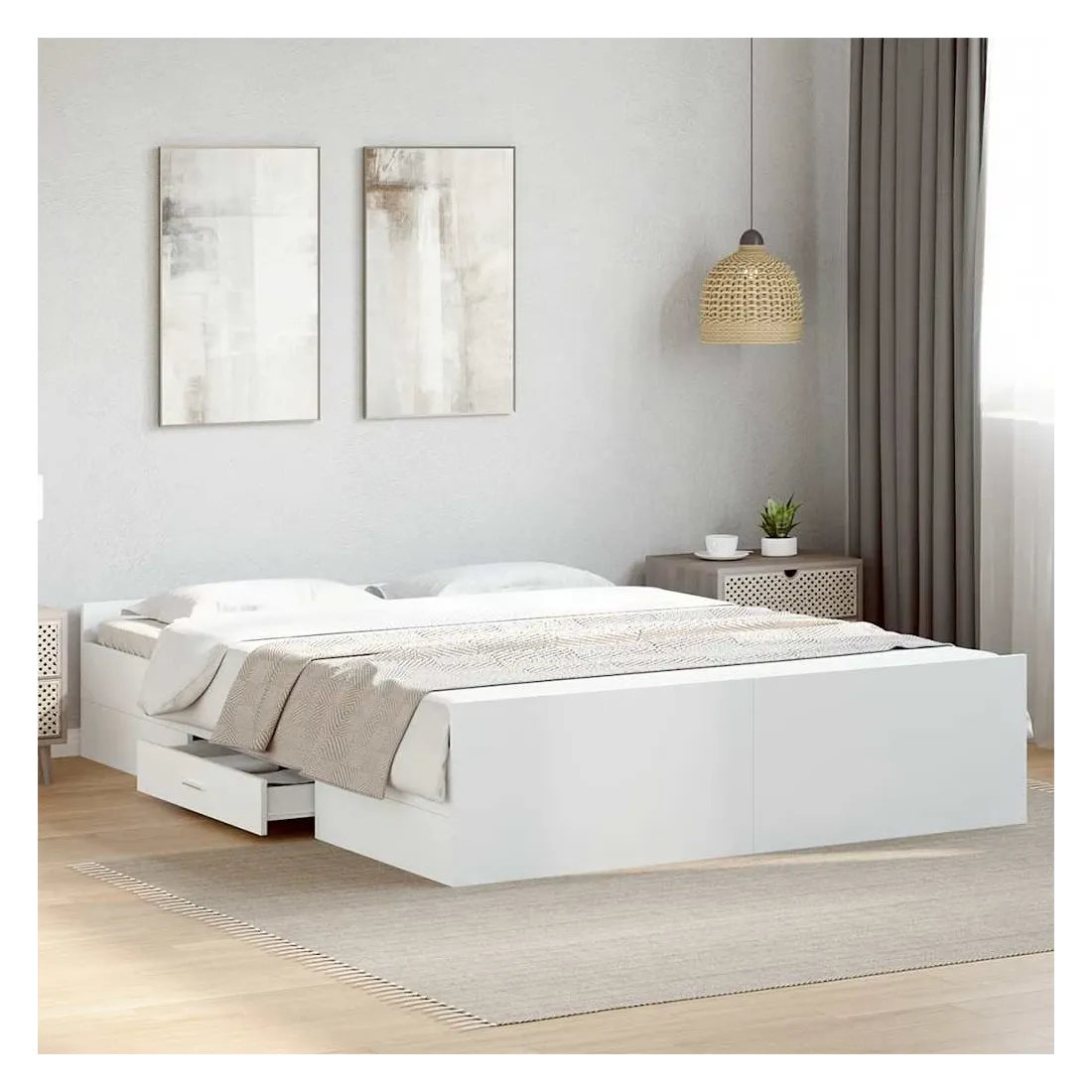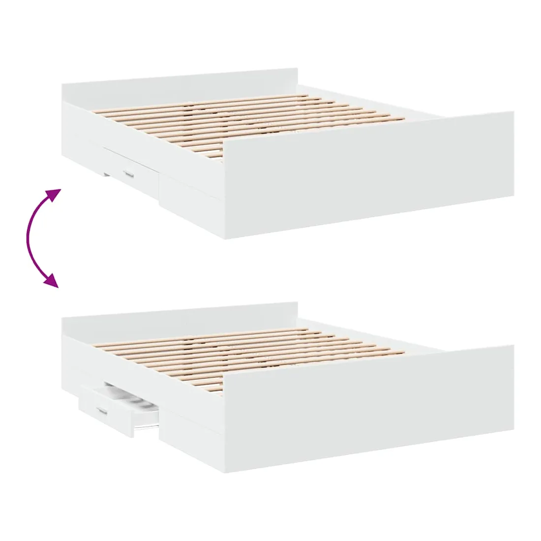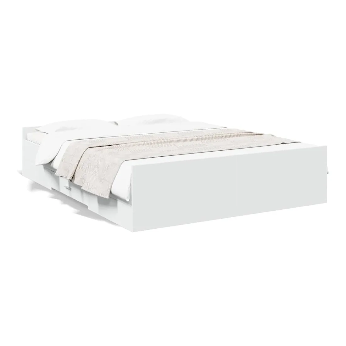 Ajoutez une touche moderne à votre chambre à coucher avec ce cadre de lit avec tiroirs ! Il apportera une touche pratique et décorative à votre espace de vie. Matériau durable : le cadre de lit est fabriquée en bois d'ingénierie. Le bois d'ingénierie est d'une qualité exceptionnelle avec une surface lisse et présente également de la résistance, de la stabilité et de la résistance à l'humidité.Lattes robustes : les lattes de contreplaqué assurent une bonne répartition du poids, garantissant que le matelas reste en place à chaque torsion de votre corps pendant le sommeil.Fonction de rangement : les tiroirs de lit inclus offrent suffisamment d'espace de rangement pour ranger vos articles essentiels, gardant votre pièce propre et bien rangée. Bon à savoir :Un matelas n'est pas inclus avec ce lit. Nous offrons une sélection variée de matelas. Vous pouvez consulter notre boutique pour trouver un matelas assorti.