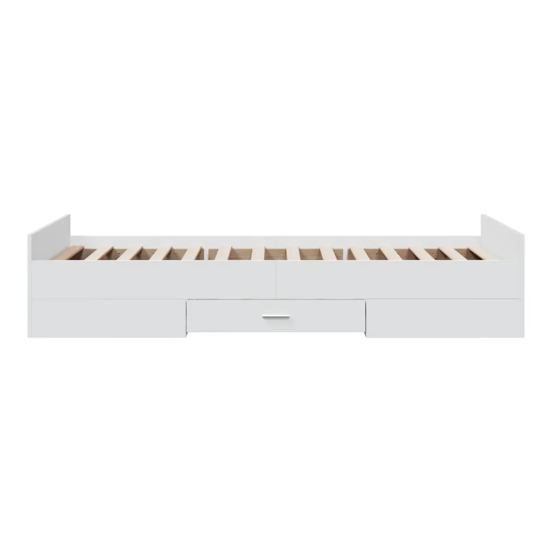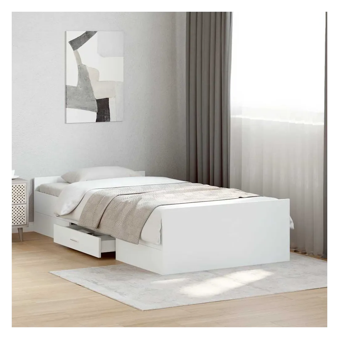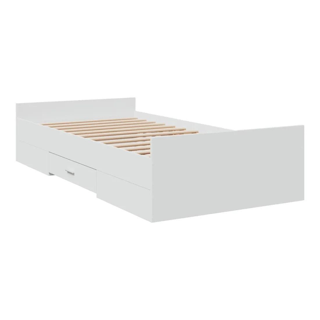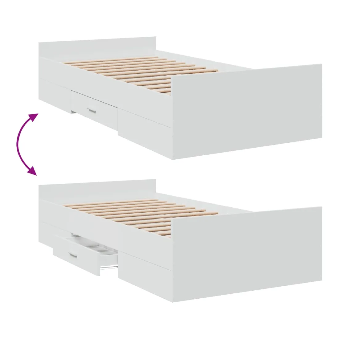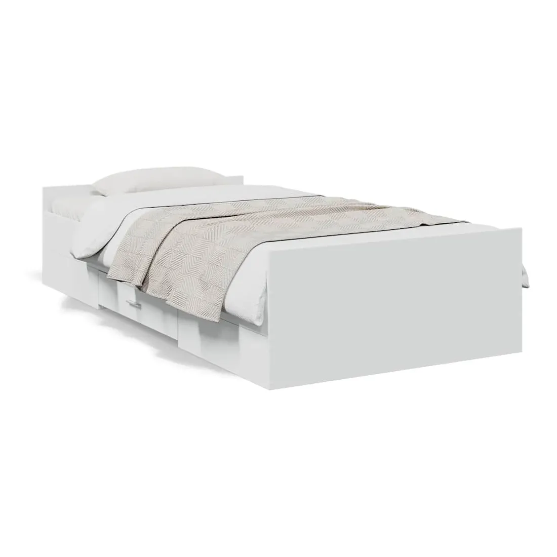 Ajoutez une touche moderne à votre chambre à coucher avec ce cadre de lit avec tiroirs ! Il apportera une touche pratique et décorative à votre espace de vie. Matériau durable : le cadre de lit est fabriquée en bois d'ingénierie. Le bois d'ingénierie est d'une qualité exceptionnelle avec une surface lisse et présente également de la résistance, de la stabilité et de la résistance à l'humidité.Lattes robustes : les lattes de contreplaqué assurent une bonne répartition du poids, garantissant que le matelas reste en place à chaque torsion de votre corps pendant le sommeil.Fonction de rangement : les tiroirs de lit inclus offrent suffisamment d'espace de rangement pour ranger vos articles essentiels, gardant votre pièce propre et bien rangée. Bon à savoir :Un matelas n'est pas inclus avec ce lit. Nous offrons une sélection variée de matelas. Vous pouvez consulter notre boutique pour trouver un matelas assorti.