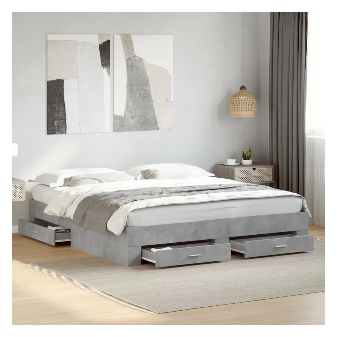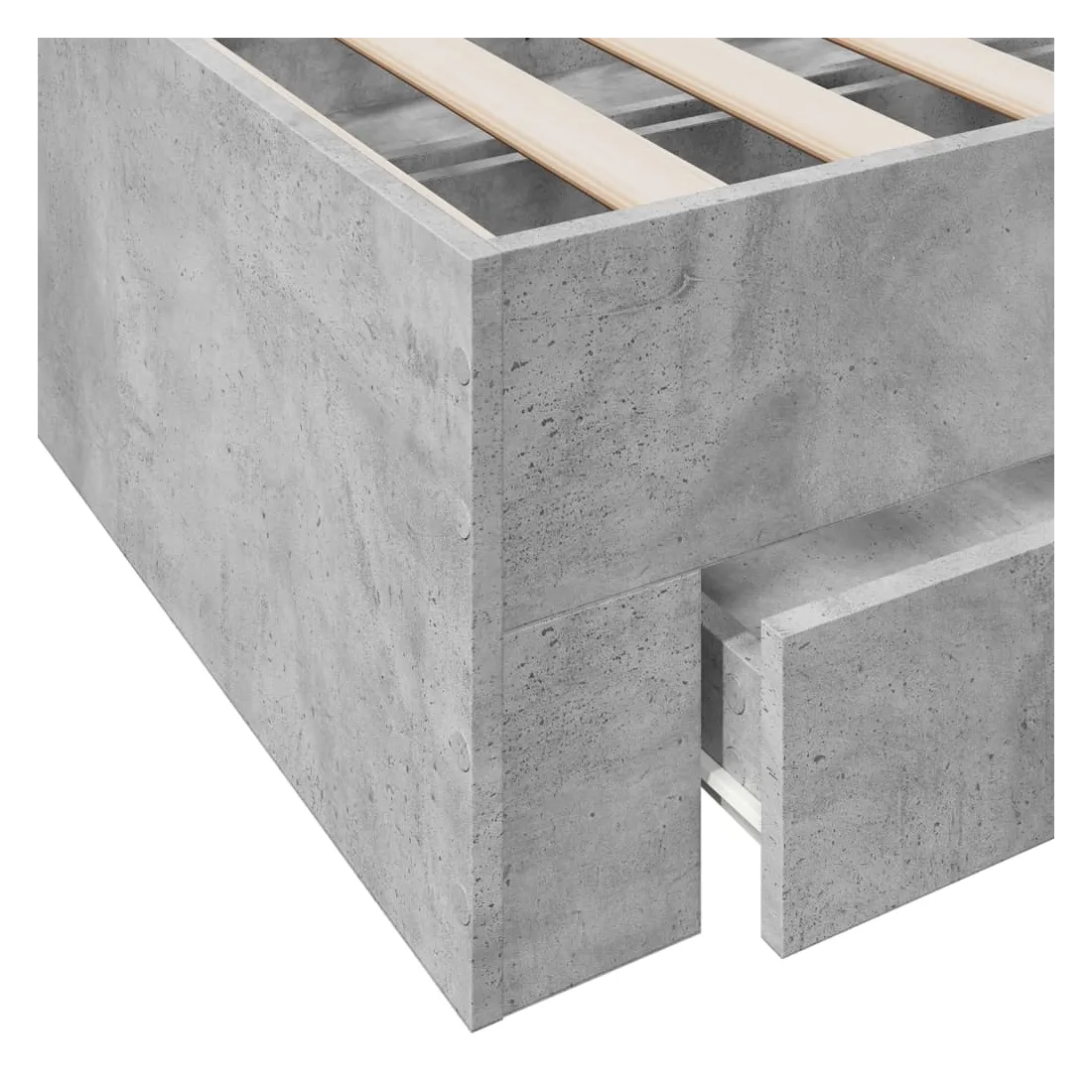 Ajoutez une touche moderne à votre chambre à coucher avec ce cadre de lit avec tiroirs ! Il apportera une touche pratique et décorative à votre espace de vie. Matériau durable : le cadre de lit est fabriquée en bois d'ingénierie. Le bois d'ingénierie est d'une qualité exceptionnelle avec une surface lisse et présente également de la résistance, de la stabilité et de la résistance à l'humidité.Lattes robustes : les lattes de contreplaqué assurent une bonne répartition du poids, garantissant que le matelas reste en place à chaque torsion de votre corps pendant le sommeil.Fonction de rangement : les tiroirs de lit inclus offrent suffisamment d'espace de rangement pour ranger vos articles essentiels, gardant votre pièce propre et bien rangée. Bon à savoir :Un matelas n'est pas inclus avec ce lit. Nous offrons une sélection variée de matelas. Vous pouvez consulter notre boutique pour trouver un matelas assorti.