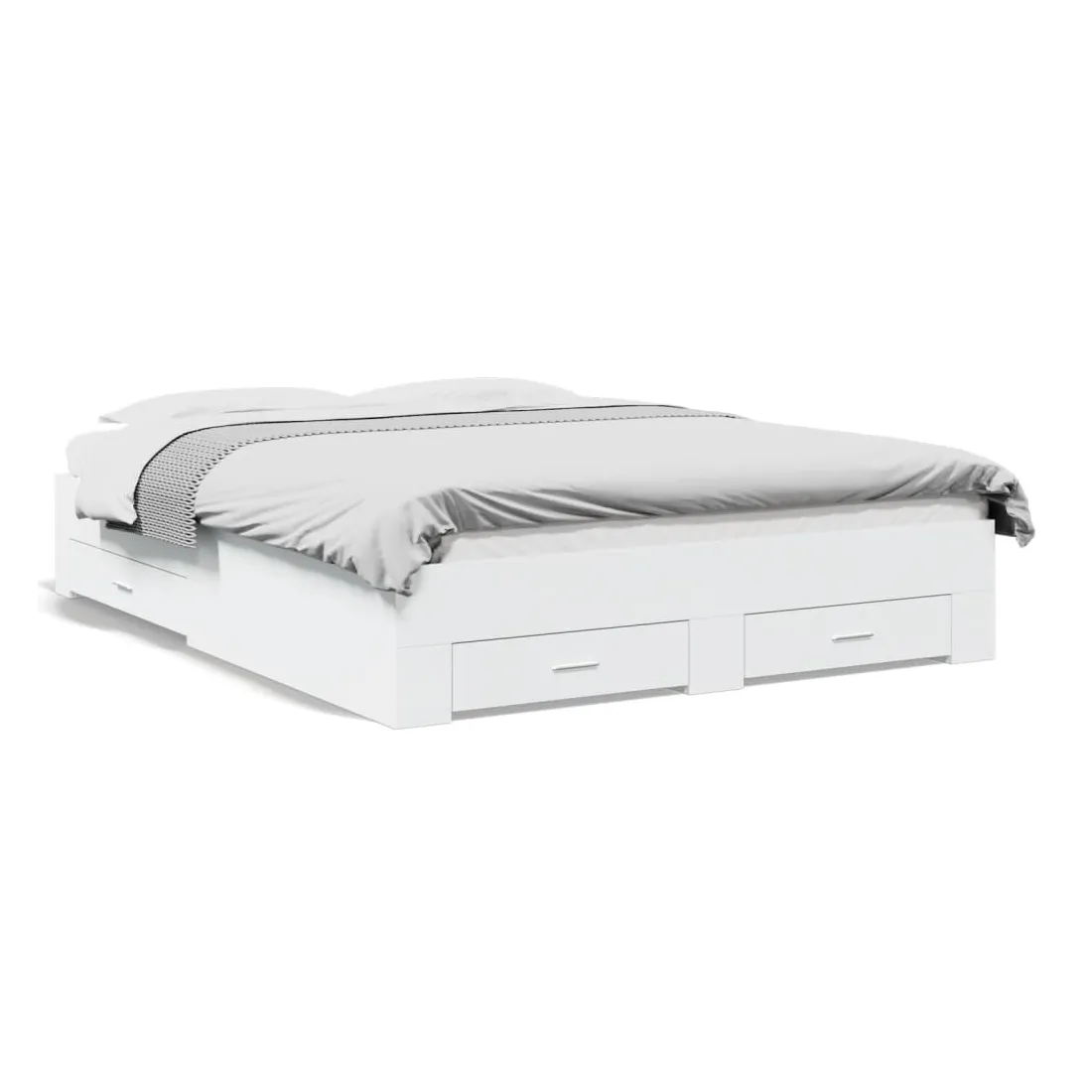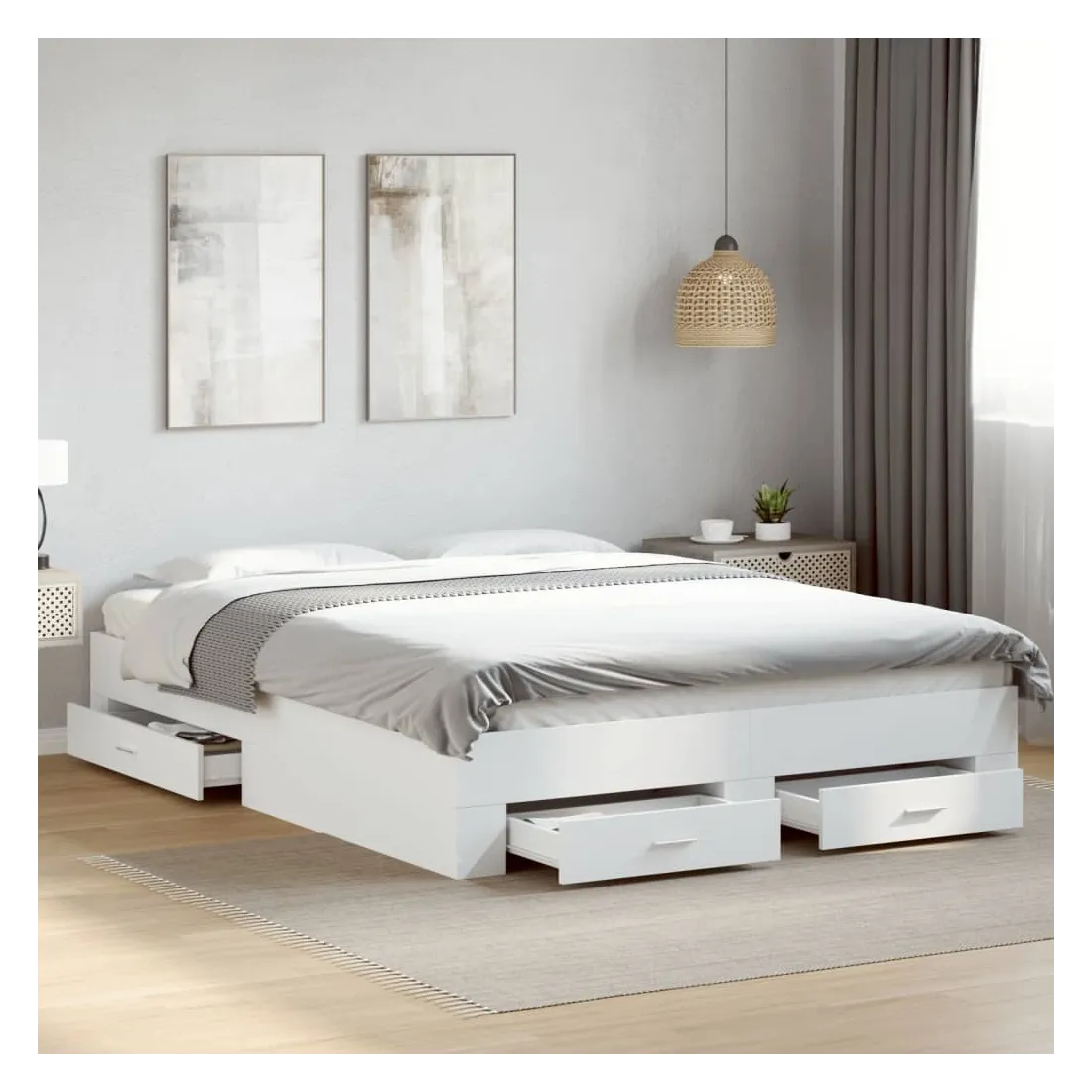 Ajoutez une touche moderne à votre chambre à coucher avec ce cadre de lit avec tiroirs ! Il apportera une touche pratique et décorative à votre espace de vie. Matériau durable : le cadre de lit est fabriquée en bois d'ingénierie. Le bois d'ingénierie est d'une qualité exceptionnelle avec une surface lisse et présente également de la résistance, de la stabilité et de la résistance à l'humidité.Lattes robustes : les lattes de contreplaqué assurent une bonne répartition du poids, garantissant que le matelas reste en place à chaque torsion de votre corps pendant le sommeil.Fonction de rangement : les tiroirs de lit inclus offrent suffisamment d'espace de rangement pour ranger vos articles essentiels, gardant votre pièce propre et bien rangée. Bon à savoir :Un matelas n'est pas inclus avec ce lit. Nous offrons une sélection variée de matelas. Vous pouvez consulter notre boutique pour trouver un matelas assorti.