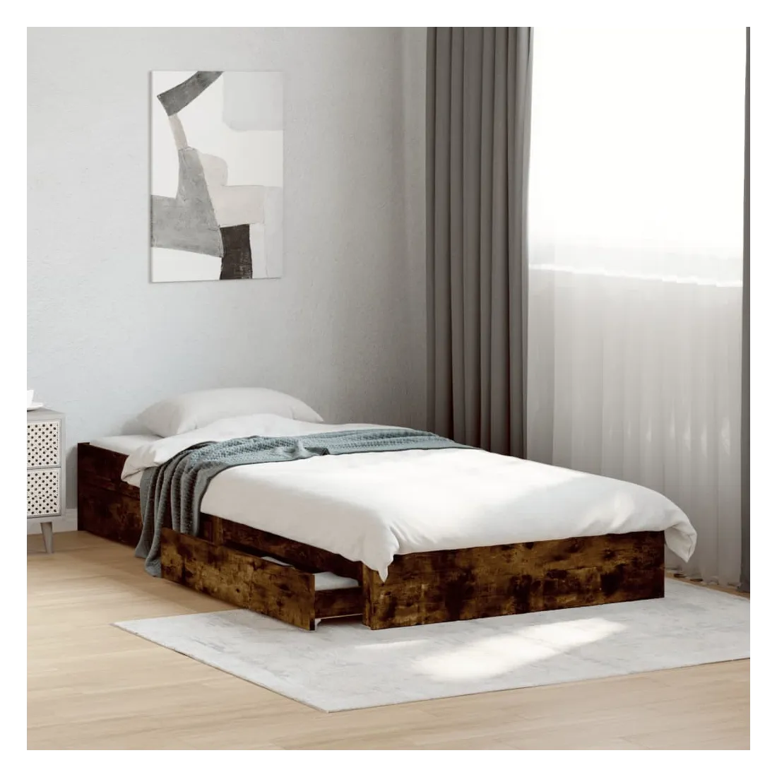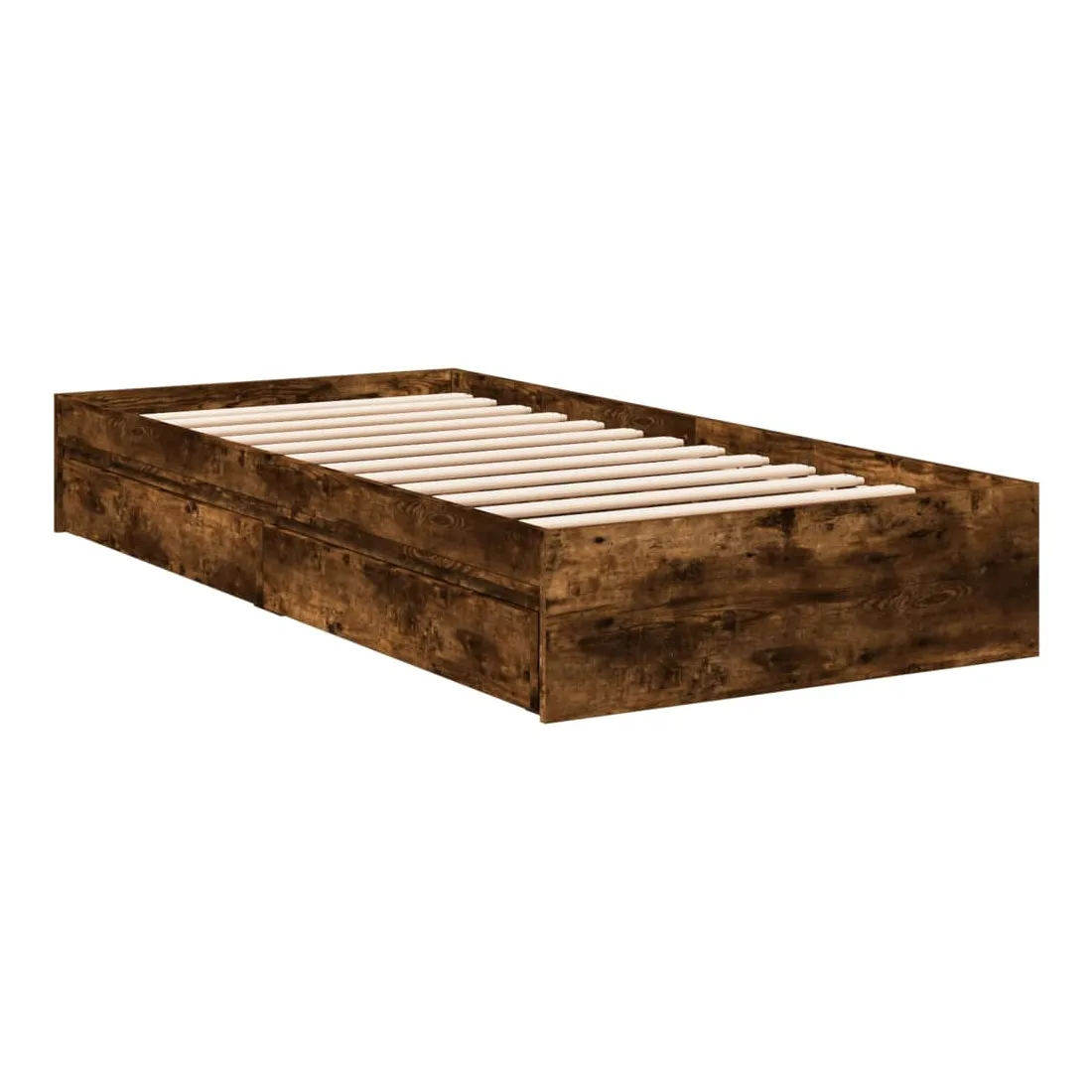 Ajoutez une touche moderne à votre chambre à coucher avec ce cadre de lit avec tiroirs ! Il apportera une touche pratique et décorative à votre espace de vie. Matériau durable : le cadre de lit est fabriquée en bois d'ingénierie. Le bois d'ingénierie est d'une qualité exceptionnelle avec une surface lisse et présente également de la résistance, de la stabilité et de la résistance à l'humidité.Lattes robustes : les lattes de contreplaqué assurent une bonne répartition du poids, garantissant que le matelas reste en place à chaque torsion de votre corps pendant le sommeil.Fonction de rangement : les tiroirs de lit inclus offrent suffisamment d'espace de rangement pour ranger vos articles essentiels, gardant votre pièce propre et bien rangée. Bon à savoir :Un matelas n'est pas inclus avec ce lit. Nous offrons une sélection variée de matelas. Vous pouvez consulter notre boutique pour trouver un matelas assorti.