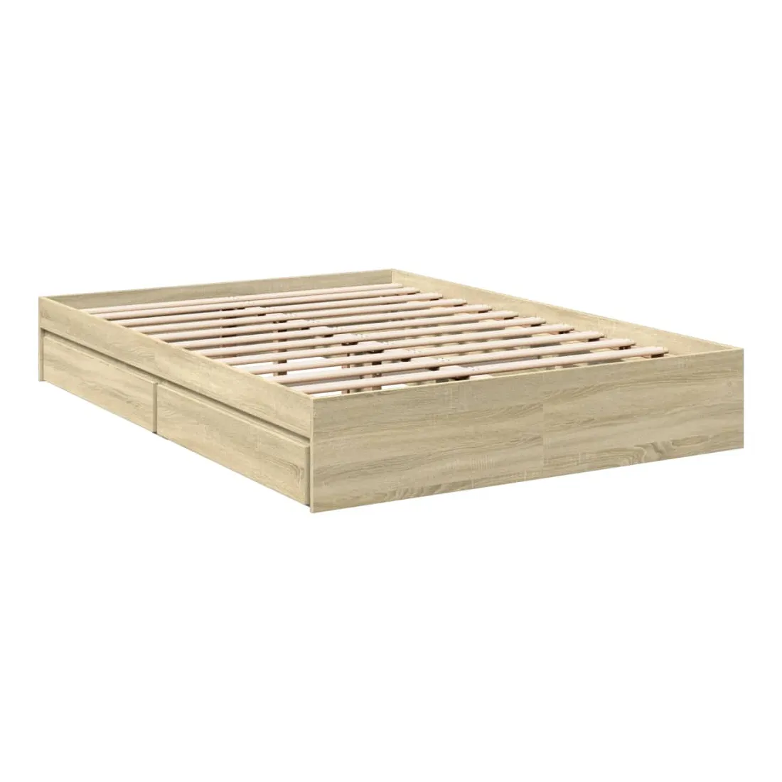 Ajoutez une touche moderne à votre chambre à coucher avec ce cadre de lit avec tiroirs ! Il apportera une touche pratique et décorative à votre espace de vie. Matériau durable : le cadre de lit est fabriquée en bois d'ingénierie. Le bois d'ingénierie est d'une qualité exceptionnelle avec une surface lisse et présente également de la résistance, de la stabilité et de la résistance à l'humidité.Lattes robustes : les lattes de contreplaqué assurent une bonne répartition du poids, garantissant que le matelas reste en place à chaque torsion de votre corps pendant le sommeil.Fonction de rangement : les tiroirs de lit inclus offrent suffisamment d'espace de rangement pour ranger vos articles essentiels, gardant votre pièce propre et bien rangée. Bon à savoir :Un matelas n'est pas inclus avec ce lit. Nous offrons une sélection variée de matelas. Vous pouvez consulter notre boutique pour trouver un matelas assorti.