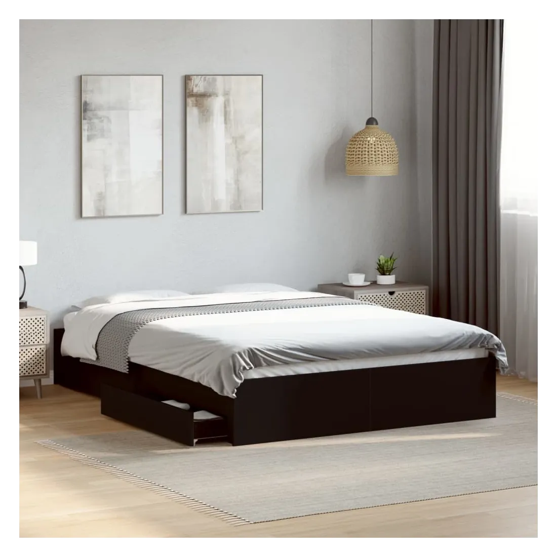 vidaXLAjoutez une touche moderne à votre chambre à coucher avec ce cadre de lit avec tiroirs ! Il apportera une touche pratique et décorative à votre espace de vie. Matériau durable : le cadre de lit est fabriquée en bois d'ingénierie. Le bois d'ingénierie est d'une qualité exceptionnelle avec une surface lisse et présente également de la résistance, de la stabilité et de la résistance à l'humidité.Lattes robustes : les lattes de contreplaqué assurent une bonne répartition du poids, garantissant que le matelas reste en place à chaque torsion de votre corps pendant le sommeil.Fonction de rangement : les tiroirs de lit inclus offrent suffisamment d'espace de rangement pour ranger vos articles essentiels, gardant votre pièce propre et bien rangée. Bon à savoir :Un matelas n'est pas inclus avec ce lit. Nous offrons une sélection variée de matelas. Vous pouvez consulter notre boutique pour trouver un matelas assorti.