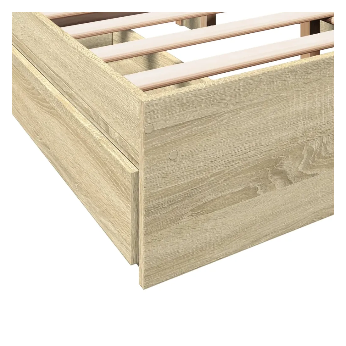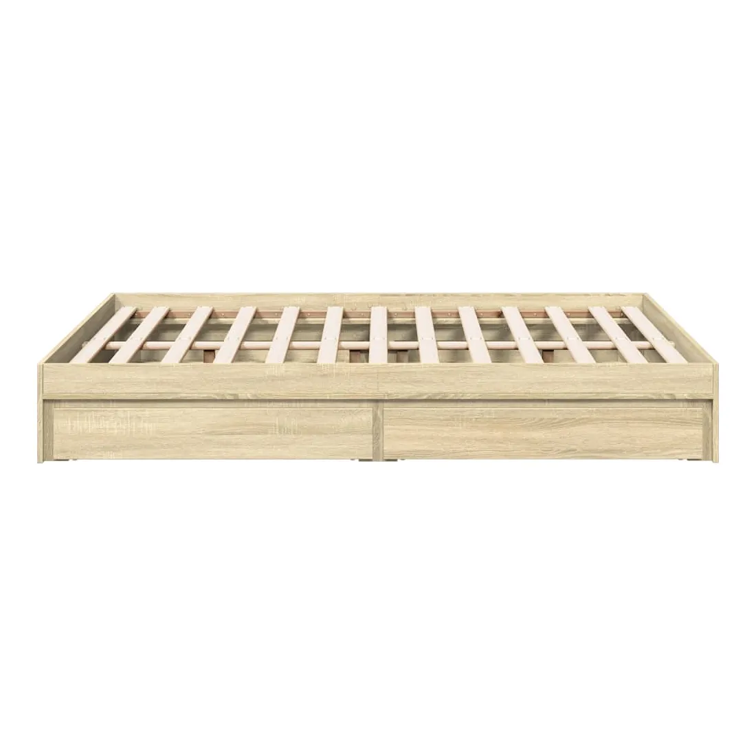 Ajoutez une touche moderne à votre chambre à coucher avec ce cadre de lit avec tiroirs ! Il apportera une touche pratique et décorative à votre espace de vie. Matériau durable : le cadre de lit est fabriquée en bois d'ingénierie. Le bois d'ingénierie est d'une qualité exceptionnelle avec une surface lisse et présente également de la résistance, de la stabilité et de la résistance à l'humidité.Lattes robustes : les lattes de contreplaqué assurent une bonne répartition du poids, garantissant que le matelas reste en place à chaque torsion de votre corps pendant le sommeil.Fonction de rangement : les tiroirs de lit inclus offrent suffisamment d'espace de rangement pour ranger vos articles essentiels, gardant votre pièce propre et bien rangée. Bon à savoir :Un matelas n'est pas inclus avec ce lit. Nous offrons une sélection variée de matelas. Vous pouvez consulter notre boutique pour trouver un matelas assorti.