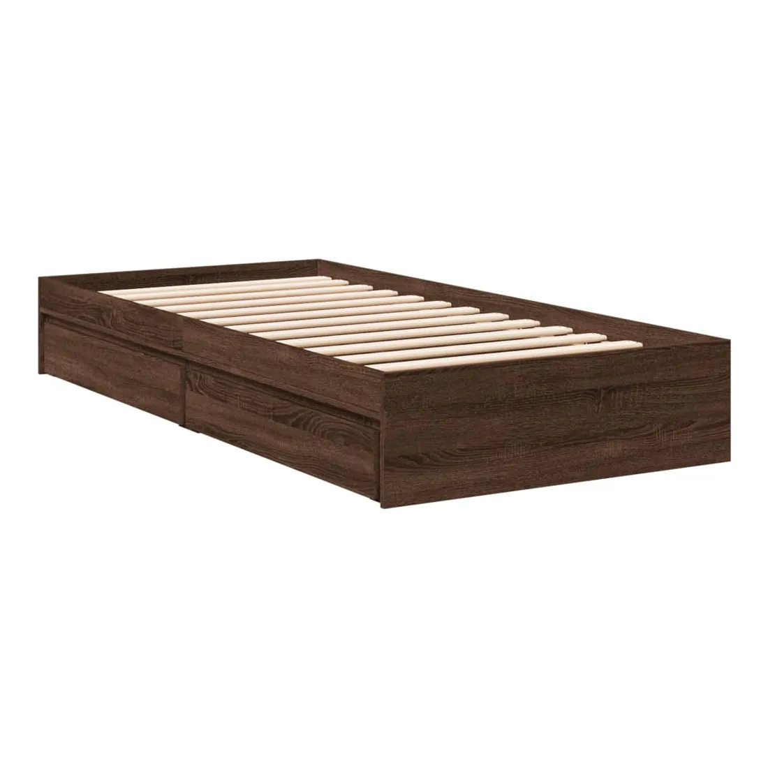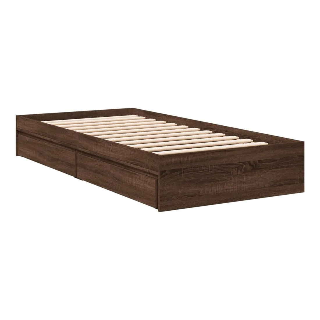 Ajoutez une touche moderne à votre chambre à coucher avec ce cadre de lit avec tiroirs ! Il apportera une touche pratique et décorative à votre espace de vie. Matériau durable : le cadre de lit est fabriquée en bois d'ingénierie. Le bois d'ingénierie est d'une qualité exceptionnelle avec une surface lisse et présente également de la résistance, de la stabilité et de la résistance à l'humidité.Lattes robustes : les lattes de contreplaqué assurent une bonne répartition du poids, garantissant que le matelas reste en place à chaque torsion de votre corps pendant le sommeil.Fonction de rangement : les tiroirs de lit inclus offrent suffisamment d'espace de rangement pour ranger vos articles essentiels, gardant votre pièce propre et bien rangée. Bon à savoir :Un matelas n'est pas inclus avec ce lit. Nous offrons une sélection variée de matelas. Vous pouvez consulter notre boutique pour trouver un matelas assorti.