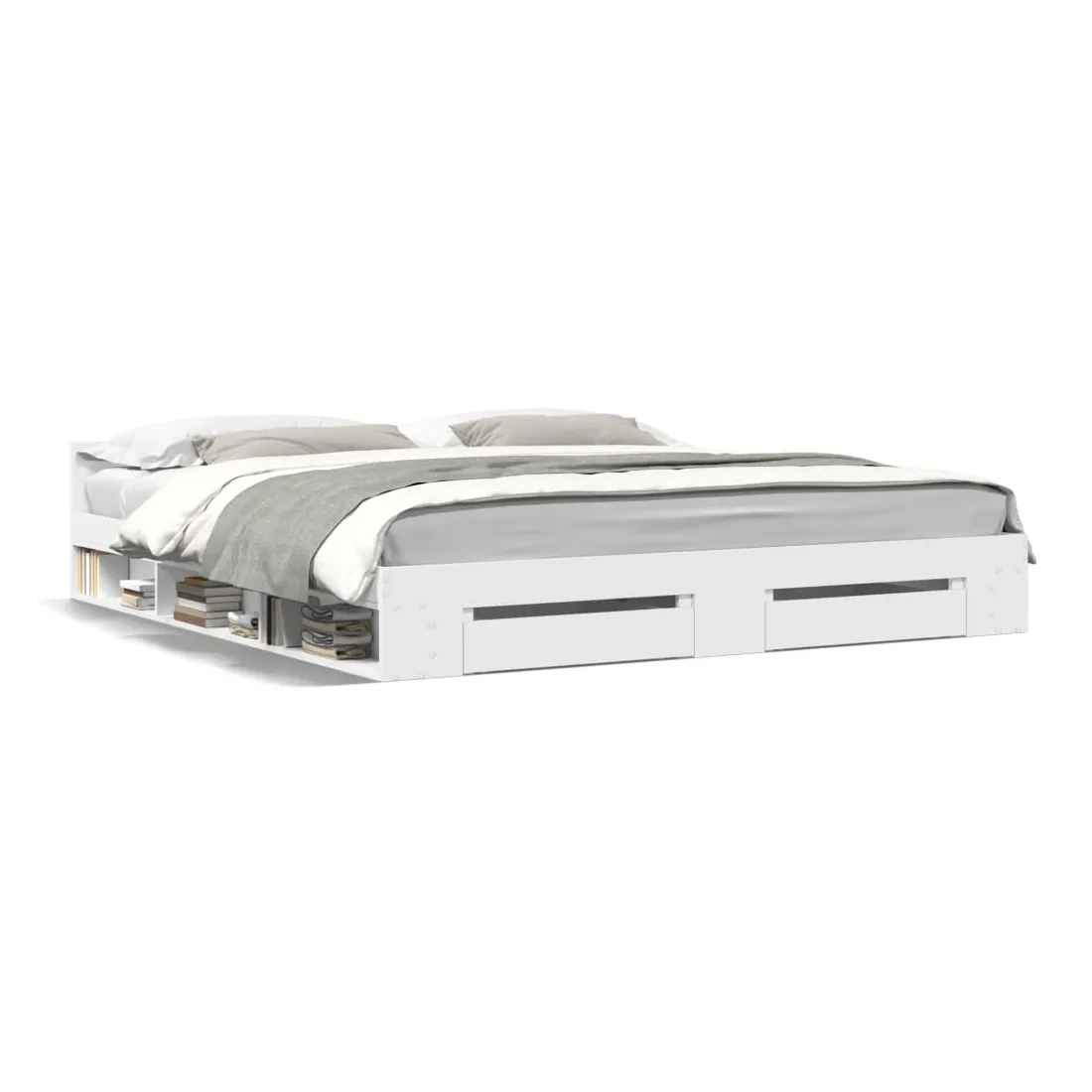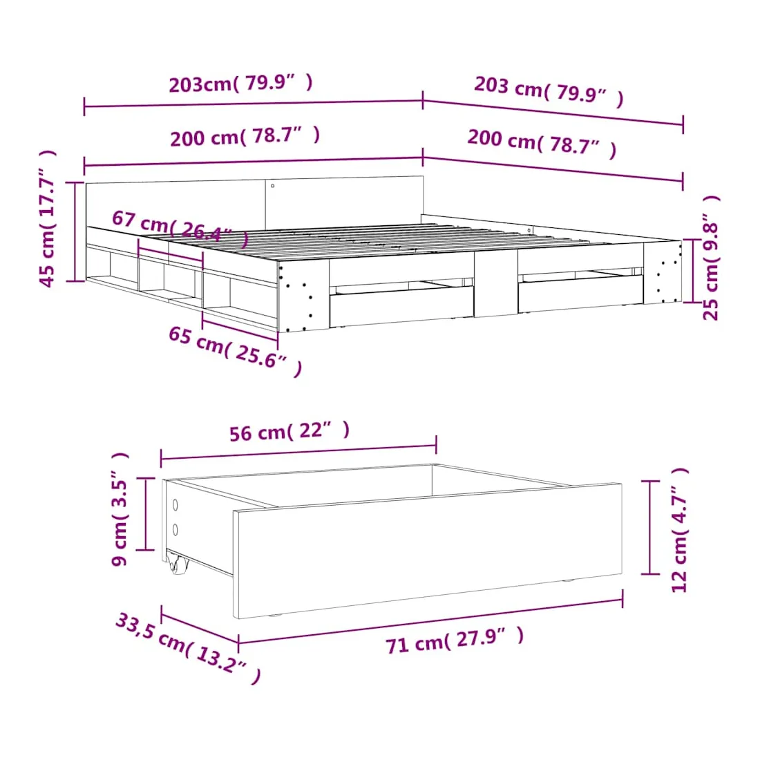 Ajoutez une touche moderne à votre chambre à coucher avec ce cadre de lit avec tiroirs ! Il apportera une touche pratique et décorative à votre espace de vie. Matériau durable : le cadre de lit est fabriquée en bois d'ingénierie. Le bois d'ingénierie est d'une qualité exceptionnelle avec une surface lisse et présente également de la résistance, de la stabilité et de la résistance à l'humidité.Lattes robustes : les lattes de contreplaqué assurent une bonne répartition du poids, garantissant que le matelas reste en place à chaque torsion de votre corps pendant le sommeil.Fonction de rangement : les tiroirs de lit et les compartiments latéraux inclus offrent suffisamment d'espace de rangement pour ranger vos articles essentiels, gardant votre pièce propre et bien rangée. Bon à savoir :Un matelas n'est pas inclus avec ce lit. Nous offrons une sélection variée de matelas. Vous pouvez consulter notre boutique pour trouver un matelas assorti.