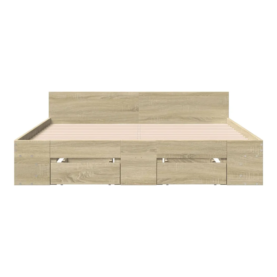 Ajoutez une touche moderne à votre chambre à coucher avec ce cadre de lit avec tiroirs ! Il apportera une touche pratique et décorative à votre espace de vie. Matériau durable : le cadre de lit est fabriquée en bois d'ingénierie. Le bois d'ingénierie est d'une qualité exceptionnelle avec une surface lisse et présente également de la résistance, de la stabilité et de la résistance à l'humidité.Lattes robustes : les lattes de contreplaqué assurent une bonne répartition du poids, garantissant que le matelas reste en place à chaque torsion de votre corps pendant le sommeil.Fonction de rangement : les tiroirs de lit et les compartiments latéraux inclus offrent suffisamment d'espace de rangement pour ranger vos articles essentiels, gardant votre pièce propre et bien rangée. Bon à savoir :Un matelas n'est pas inclus avec ce lit. Nous offrons une sélection variée de matelas. Vous pouvez consulter notre boutique pour trouver un matelas assorti.