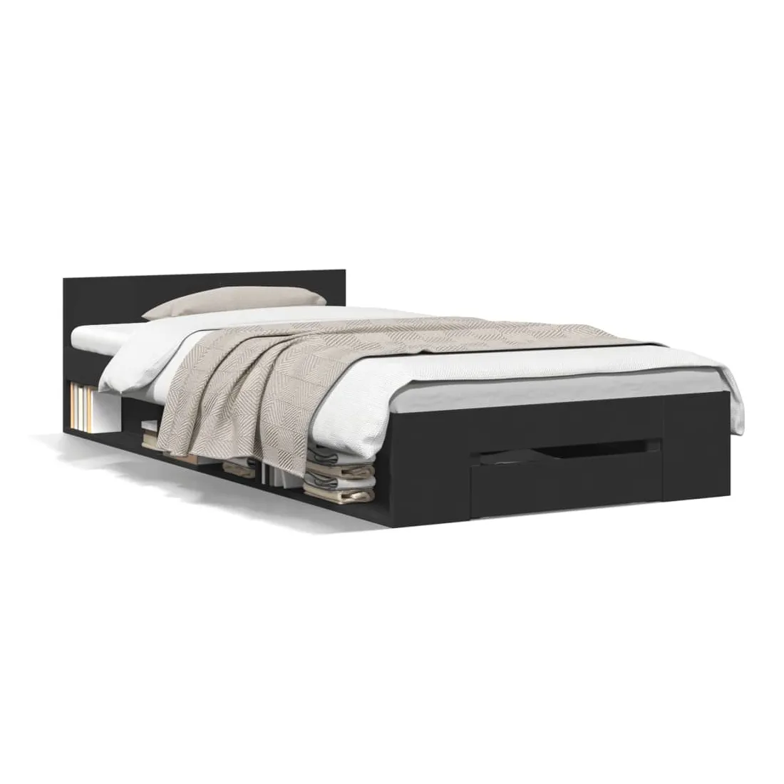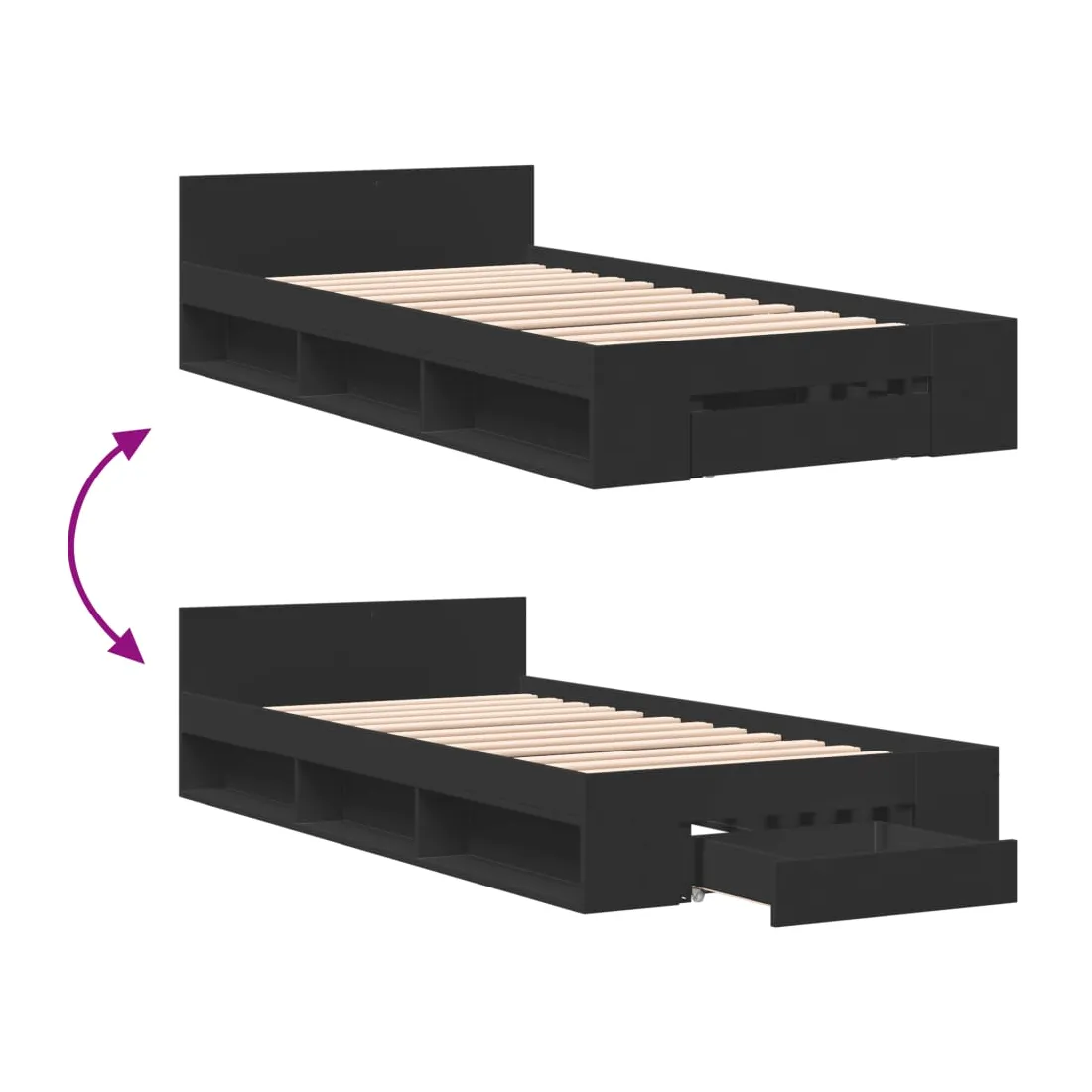 Cadre de lit avec tiroir sans matelas noir 90x200 cm