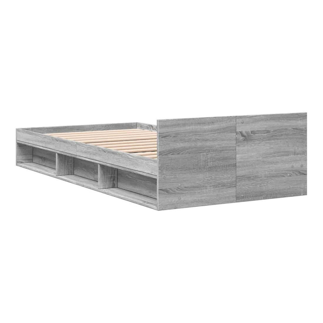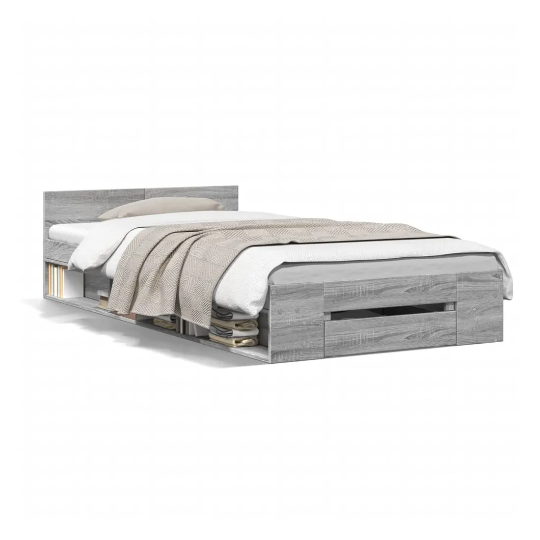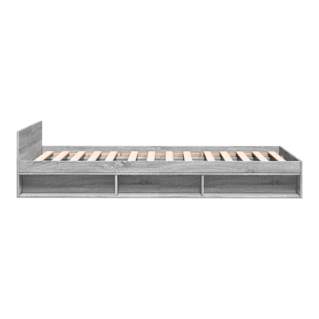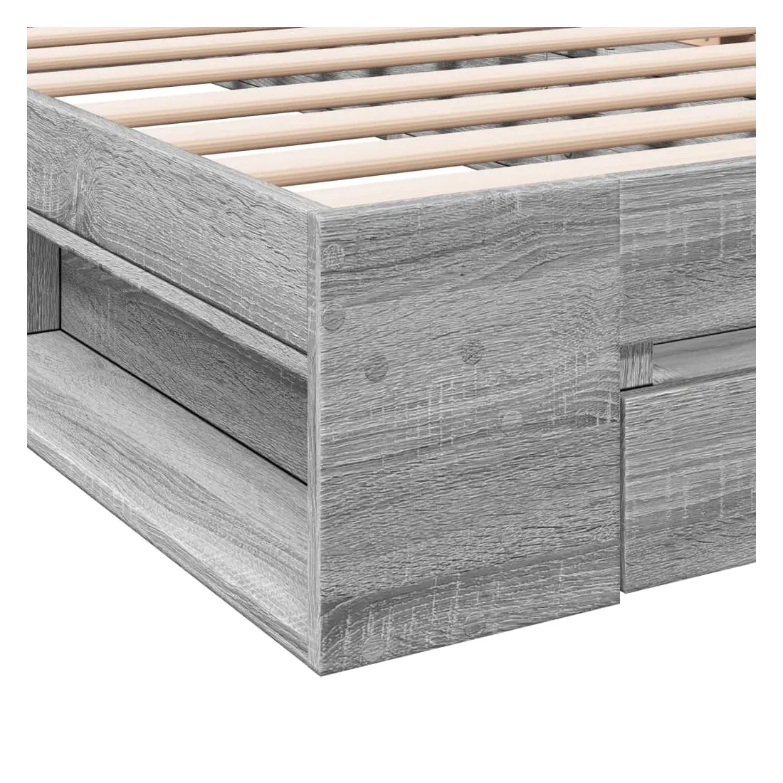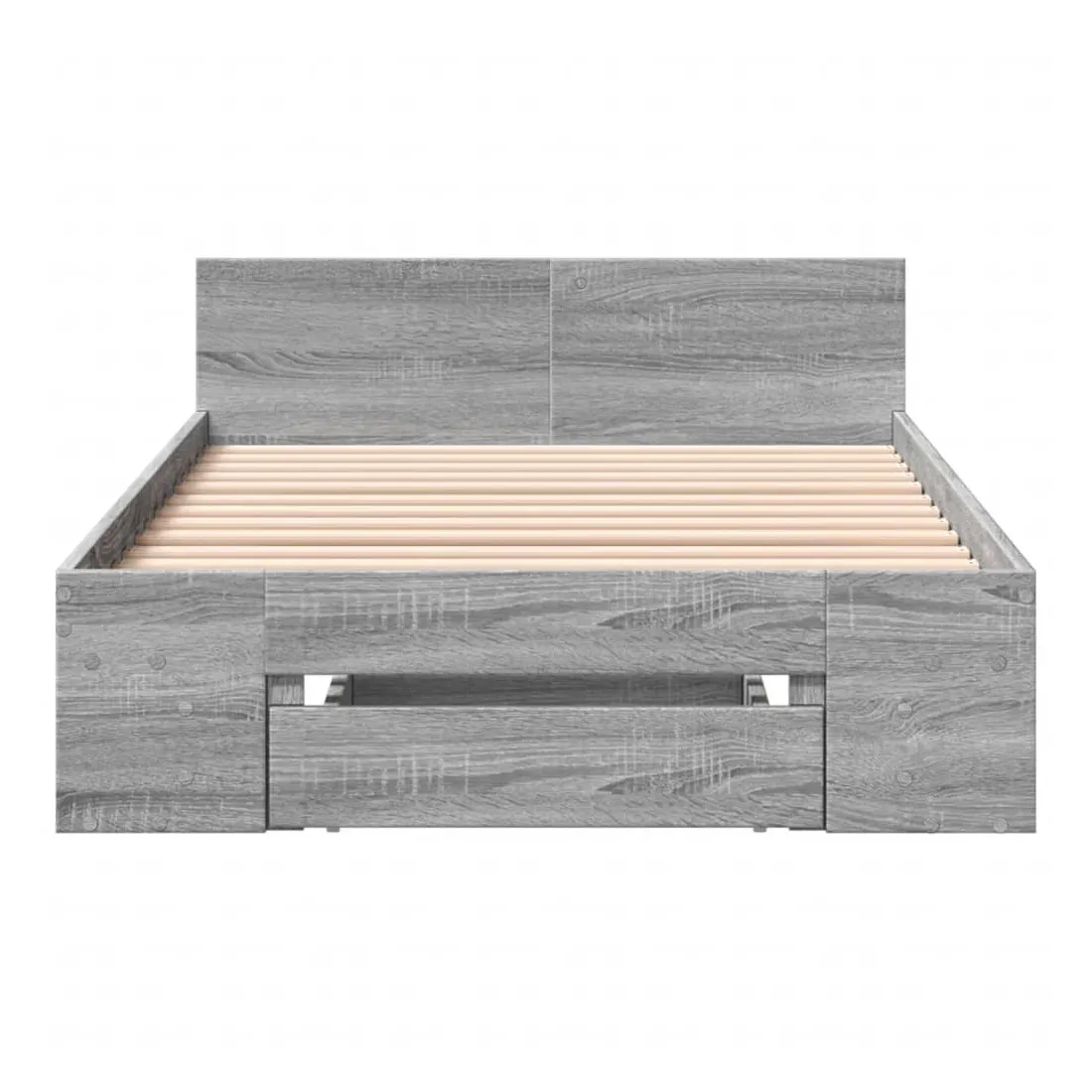 Ajoutez une touche moderne à votre chambre à coucher avec ce cadre de lit avec tiroir ! Il apportera une touche pratique et décorative à votre espace de vie. Matériau durable : le cadre de lit est fabriquée en bois d'ingénierie. Le bois d'ingénierie est d'une qualité exceptionnelle avec une surface lisse et présente également de la résistance, de la stabilité et de la résistance à l'humidité.Lattes robustes : les lattes de contreplaqué assurent une bonne répartition du poids, garantissant que le matelas reste en place à chaque torsion de votre corps pendant le sommeil.Fonction de rangement : le tiroir de lit et les compartiments latéraux inclus offrent suffisamment d'espace de rangement pour ranger vos articles essentiels, gardant votre pièce propre et bien rangée. Bon à savoir :Un matelas n'est pas inclus avec ce lit. Nous offrons une sélection variée de matelas. Vous pouvez consulter notre boutique pour trouver un matelas assorti.