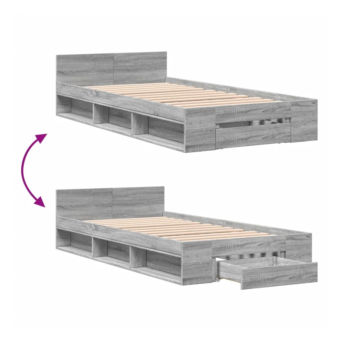 - Dimensions du tiroir de lit : 53 x 33,5 x 12 cm (L x l x H)