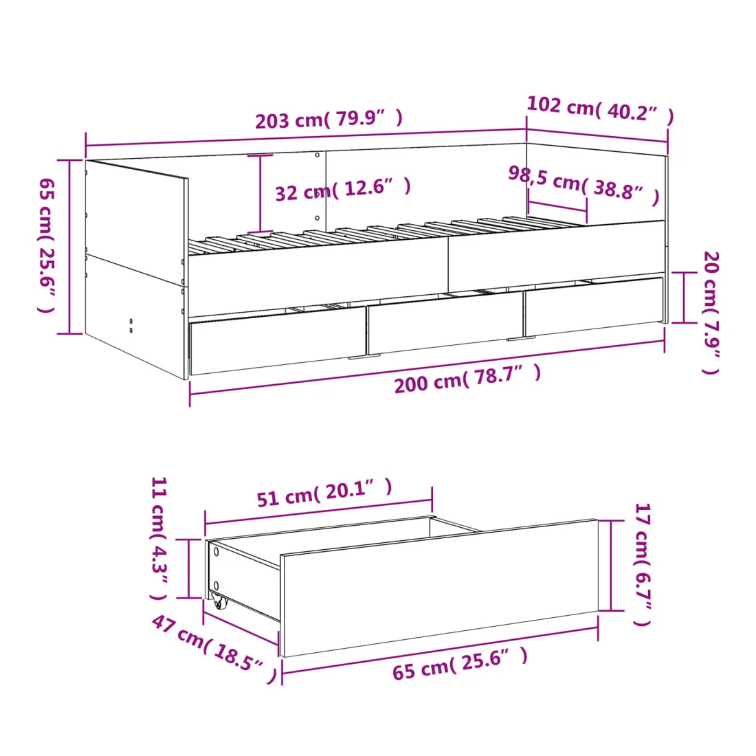Ce lit de repos 2 en 1 avec tiroirs, servant à la fois de canapé et de lit, constitue un ajout pratique et accrocheur à votre salon ou chambre à coucher. Lit de repos polyvalent : le canapé-lit fonctionne comme un canapé pendant la journée et se transforme facilement en lit double la nuit en retirant le lit gigogne, offrant une solution pratique pour accueillir des invités et maximiser l'espace. Grand espace de rangement : ce lit d'appoint dispose de 3 tiroirs à roulettes qui offrent suffisamment d'espace pour ranger vos vêtements, chaussettes, jouets, coussins, etc.Construction solide : ce canapé-lit est doté d'un cadre robuste en bois d'ingénierie. Le bois d'ingénierie est d'une qualité exceptionnelle avec une surface lisse et se caractérise par sa solidité, sa stabilité et sa résistance à l'humidité. Bon à savoir :La livraison comprend uniquement un cadre de lit de jour. Le matelas n'est pas inclus. Vous pouvez consulter notre boutique pour trouver les matelas assortis.