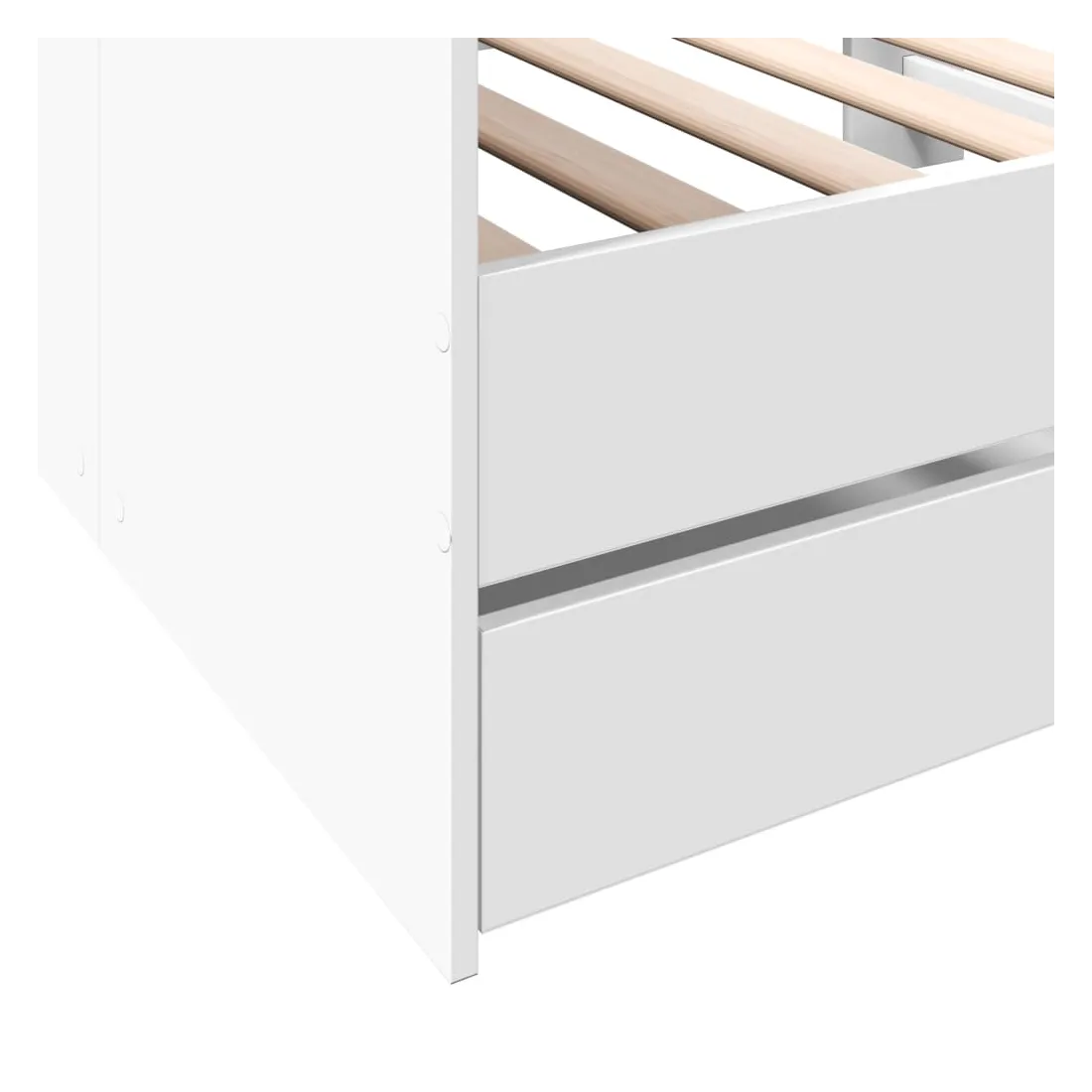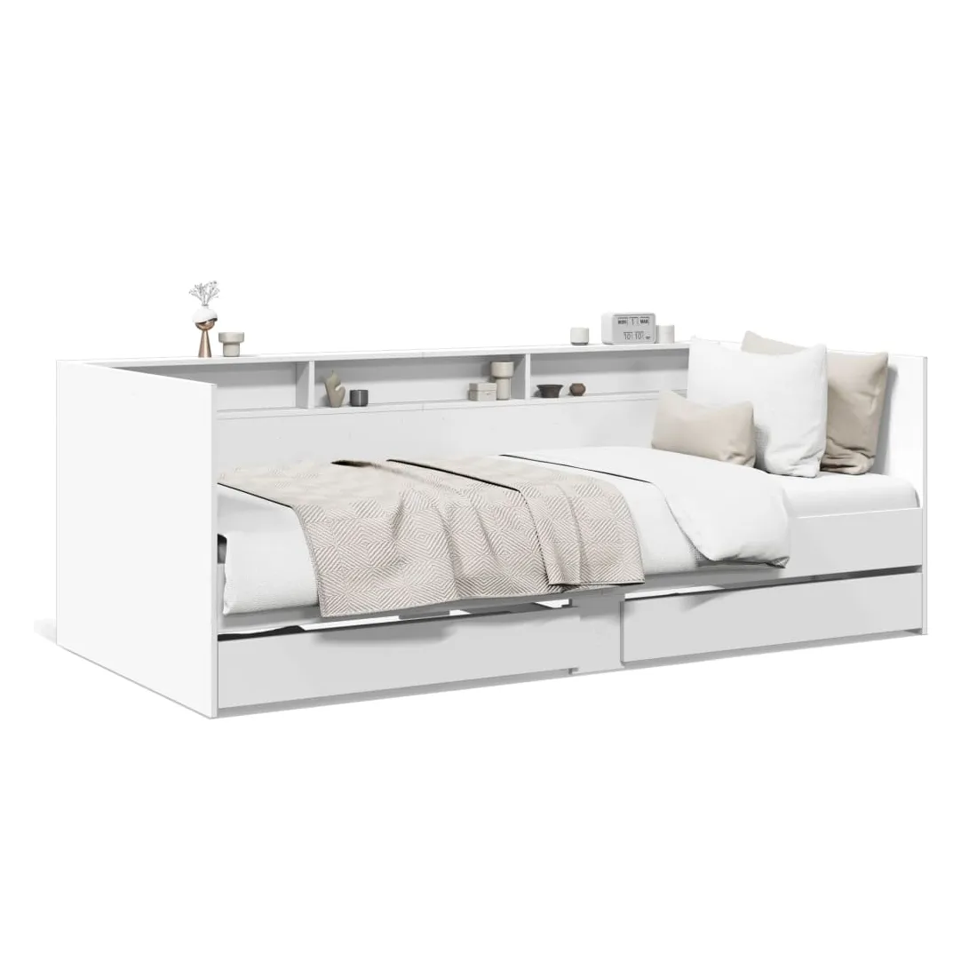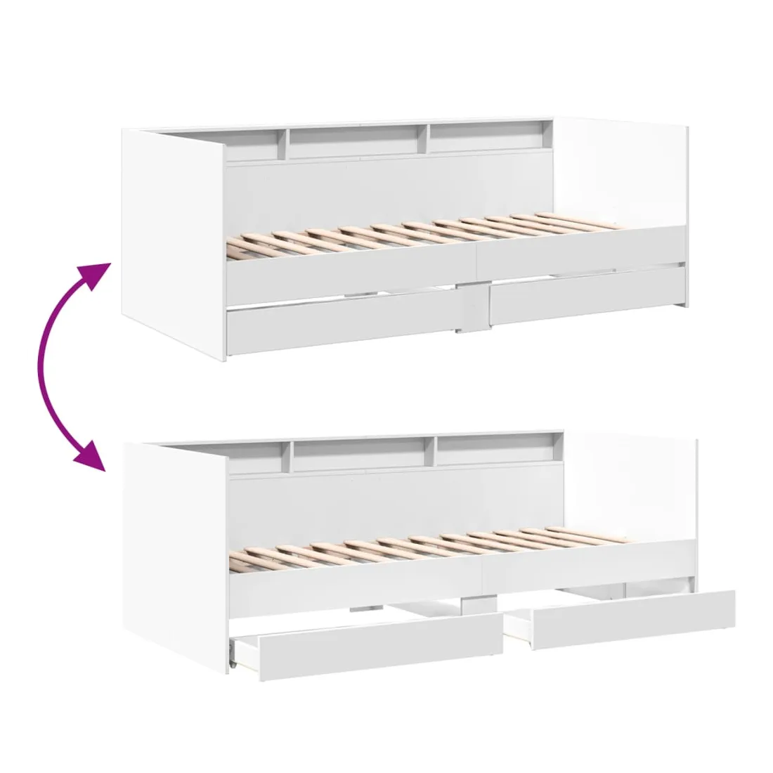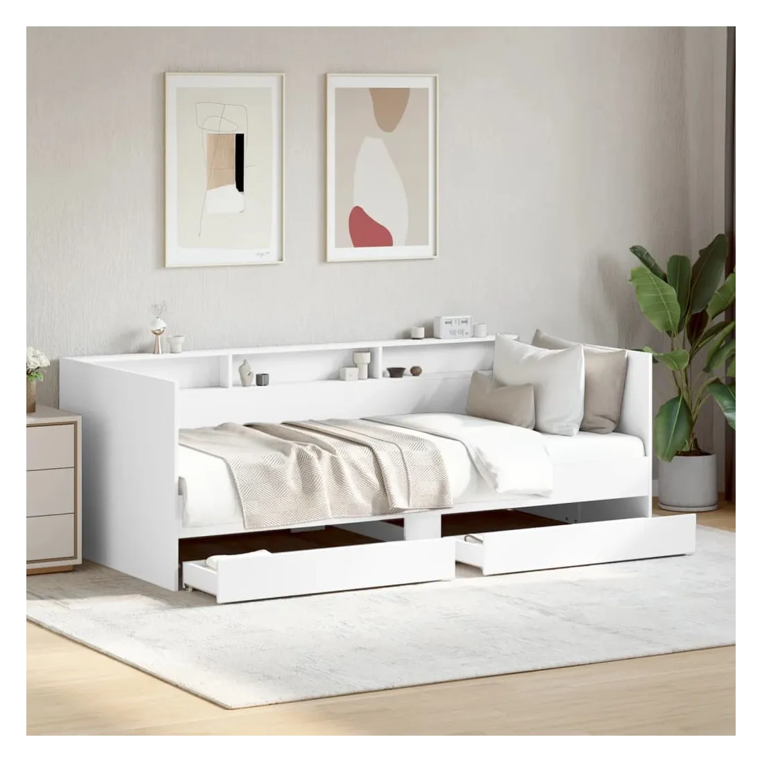 Ce lit de repos 2 en 1 avec tiroirs, servant à la fois de canapé et de lit, constitue un ajout pratique et accrocheur à votre salon ou chambre à coucher. Lit de repos polyvalent : le canapé-lit fonctionne comme un canapé pendant la journée et comme un lit pendant la nuit, offrant une solution pratique pour accueillir des invités. Grand espace de rangement : ce lit d'appoint dispose de 2 tiroirs à roulettes qui offrent suffisamment d'espace pour ranger vos vêtements, chaussettes, jouets, coussins, etc.Construction solide : ce canapé-lit est doté d'un cadre robuste en bois d'ingénierie. Le bois d'ingénierie est d'une qualité exceptionnelle avec une surface lisse et se caractérise par sa solidité, sa stabilité et sa résistance à l'humidité. Bon à savoir :La livraison comprend uniquement un cadre de lit de jour. Le matelas n'est pas inclus. Vous pouvez consulter notre boutique pour trouver les matelas assortis.