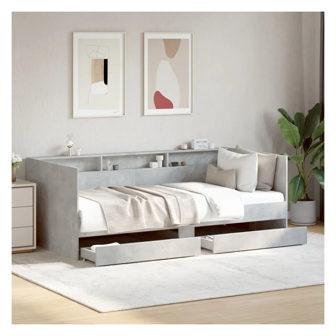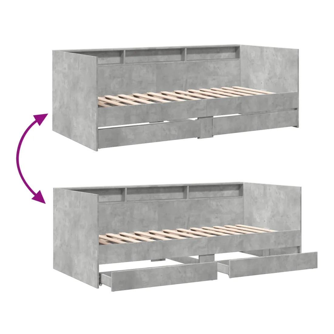 Ce lit de repos 2 en 1 avec tiroirs, servant à la fois de canapé et de lit, constitue un ajout pratique et accrocheur à votre salon ou chambre à coucher. Lit de repos polyvalent : le canapé-lit fonctionne comme un canapé pendant la journée et comme un lit pendant la nuit, offrant une solution pratique pour accueillir des invités. Grand espace de rangement : ce lit d'appoint dispose de 2 tiroirs à roulettes qui offrent suffisamment d'espace pour ranger vos vêtements, chaussettes, jouets, coussins, etc.Construction solide : ce canapé-lit est doté d'un cadre robuste en bois d'ingénierie. Le bois d'ingénierie est d'une qualité exceptionnelle avec une surface lisse et se caractérise par sa solidité, sa stabilité et sa résistance à l'humidité. Bon à savoir :La livraison comprend uniquement un cadre de lit de jour. Le matelas n'est pas inclus. Vous pouvez consulter notre boutique pour trouver les matelas assortis.