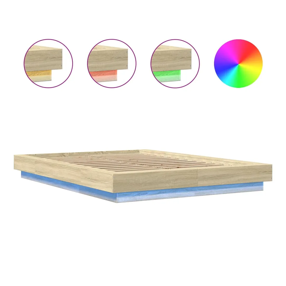 Obtenez une meilleure nuit de sommeil reposante grâce à ce cadre de lit avec lumières LED ! Il est un supplément accueillant à toute chambre à coucher. Matériau durable : le bois d'ingénierie est d'une qualité exceptionnelle avec une surface lisse et présente également résistance, stabilité et résistance à l'humidité. Lumières LED RVB : le cadre de lit est équipé de lumières LED RVB vibrantes. Avec divers menus personnalisables, vous pouvez changer sans effort la couleur des lumières et même les régler automatiquement. Ces lumières LED renforcent non seulement l'aspect contemporain du sommier, mais ajoutent également à son attrait tendance. Lattes robustes : les lattes de contreplaqué assurent une bonne répartition du poids, garantissant que le matelas reste en place à chaque torsion de votre corps pendant le sommeil. Bon à savoir :Un matelas n'est pas inclus avec ce lit. Nous offrons une sélection variée de matelas. Vous pouvez consulter notre boutique pour trouver un matelas assorti. Ce produit est doté d'un connecteur USB qui nécessite une source d'alimentation USB de 5V certifiée (non incluse).