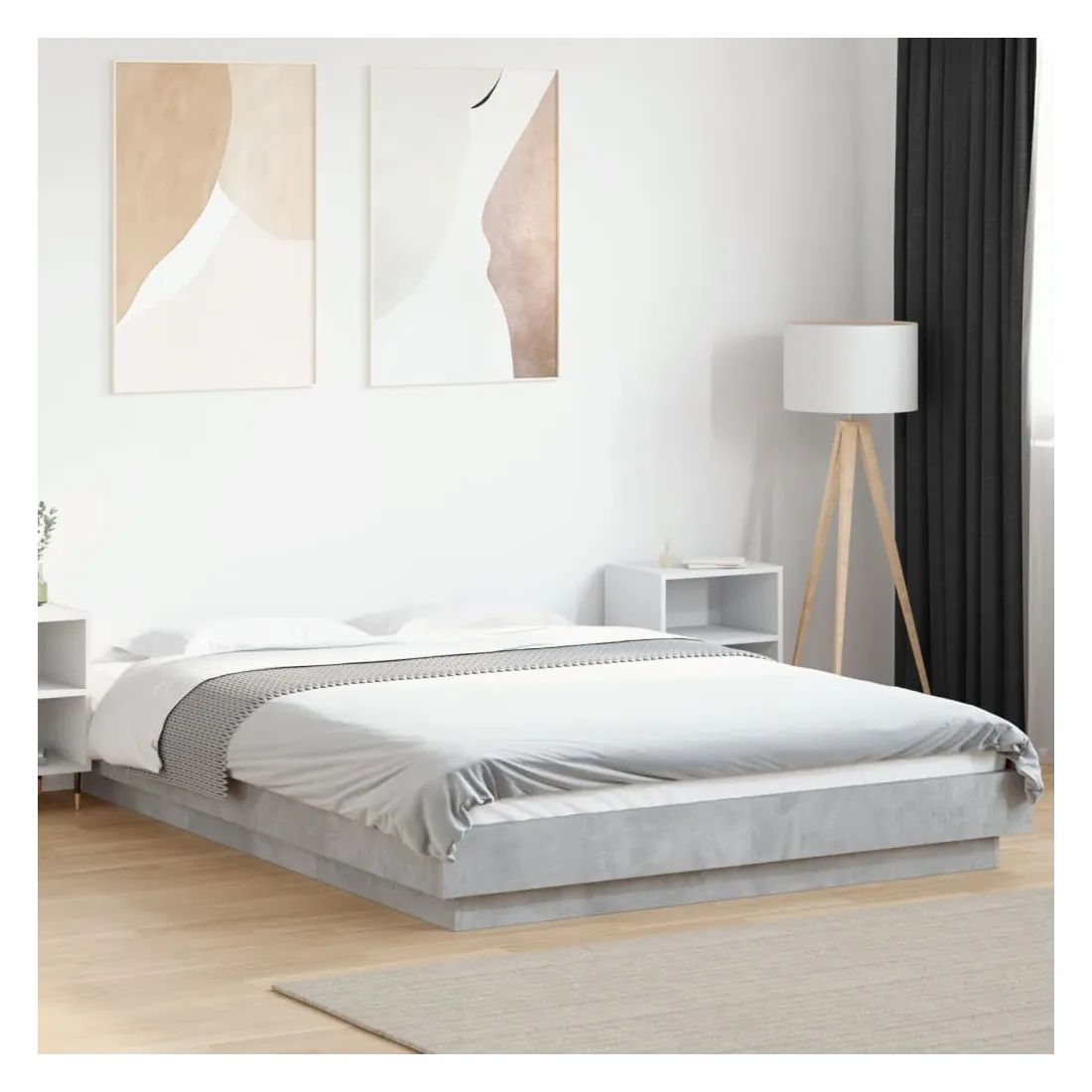 Cadre de lit sans matelas gris béton 140x190 cm