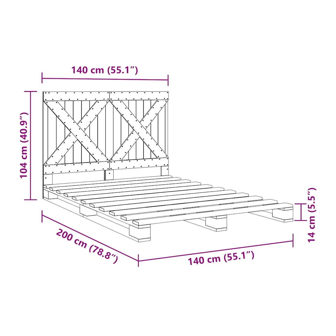 - Dimensions du matelas correspondant : 140 x 200 cm (l x L) (matelas non inclus)