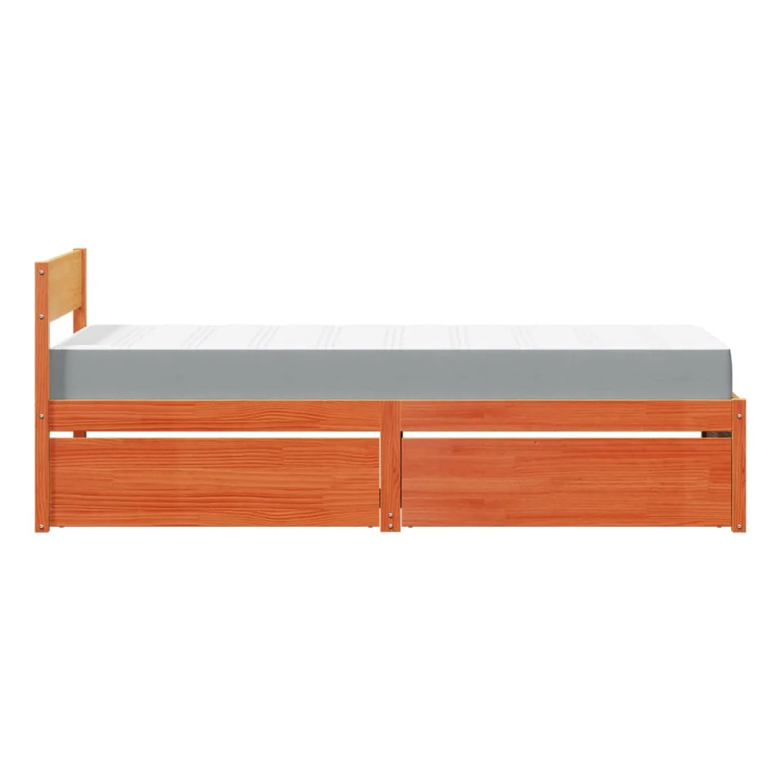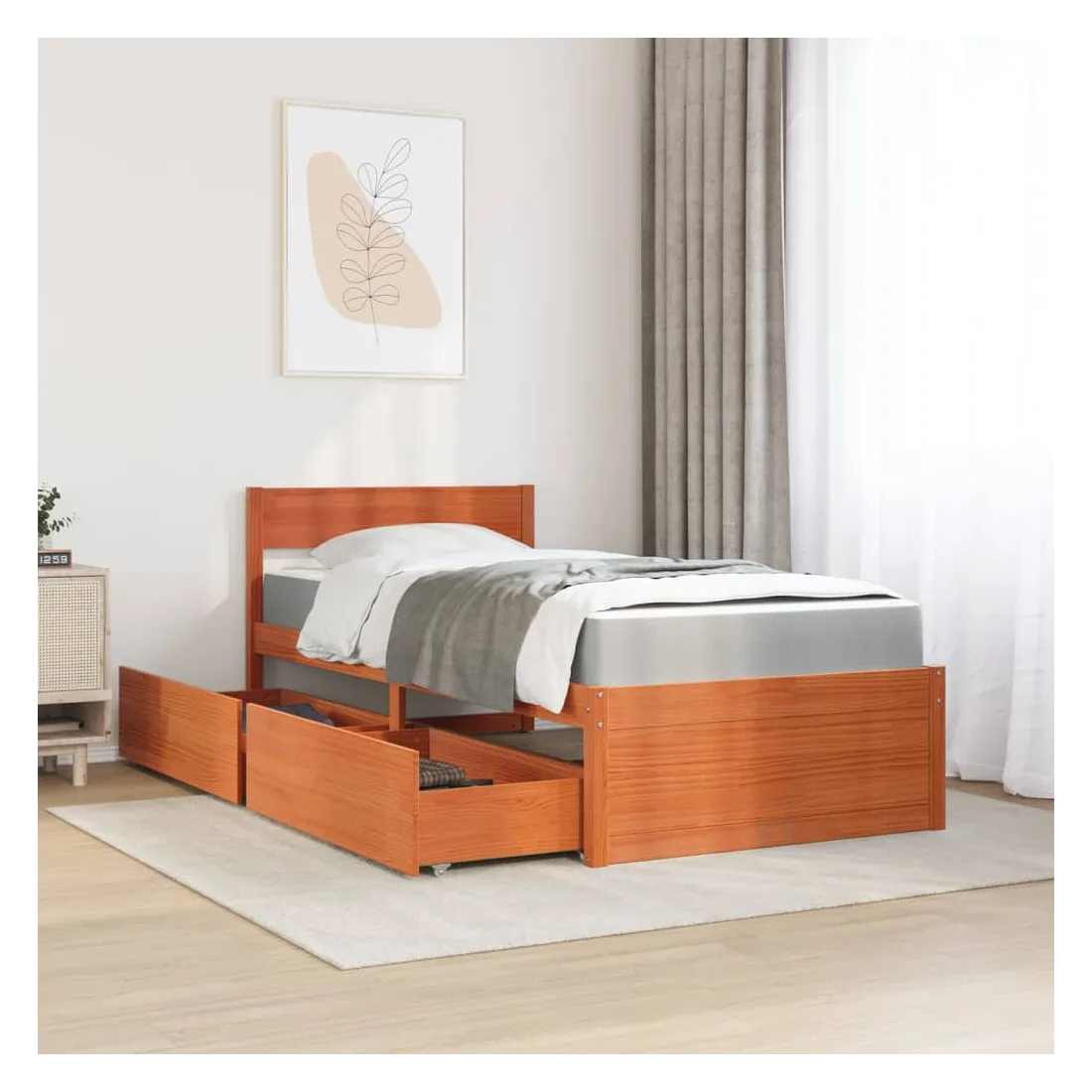 Avec un design simple mais intemporel, ce lit sera un supplément vraiment pratique et décoratif à votre chambre à coucher. Bois de pin massif : le bois de pin massif est un matériau naturel magnifique. Le bois de pin a un grain droit et les nœuds donnent au matériau son aspect caractéristique et rustique.Tissu durable : le tissu présente un aspect simple et épuré, et il est respirant et durable.Matelas à ressorts ensachés : ce matelas à ressorts ensachés comporte des ressorts ensachés individuels qui fonctionnent indépendamment pour offrir un soutien personnalisé en réagissant uniquement à la pression exercée dans chaque zone. Cette conception empêche « l'enroulement » et réduit le transfert de mouvement par rapport aux matelas traditionnels à ressorts ouverts. Chaque ressort ensaché soutient le corps individuellement.Fonction de rangement : les tiroirs de lit inclus offrent suffisamment d'espace de rangement pour ranger vos articles essentiels, gardant votre pièce propre et bien rangée.Lattes pour un soutien optimal : le cadre de lit est complété par des lattes pour offrir un soutien et une respirabilité essentiels à votre matelas. Bon à savoir :Pour des raisons d'hygiène, le matelas ne peut pas être retourné si l'emballage est retiré ou ouvert.