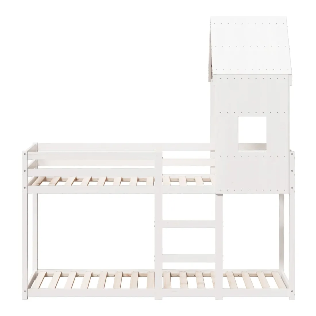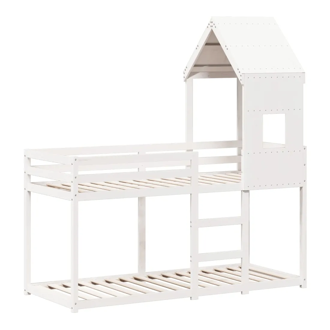 Ce lit superposé pour enfants avec toit est élégant et fonctionnel, ce qui en fait un ajout parfait à toute pièce avec un espace limité. Bois de pin massif : le bois de pin massif est un matériau naturel magnifique. Le bois de pin a un grain droit et les nœuds donnent au matériau son aspect caractéristique et rustique.Design sûr : le lit surélevé est conçu dans un souci de sécurité. Il comprend des garde-corps qui empêchent l'utilisateur de rouler pendant son sommeil.Lattes de contreplaqué : les lattes de contreplaqué assurent une bonne répartition du poids, garantissant que le matelas reste en place à chaque torsion de votre corps pendant le sommeil.Très amusant : en combinant le toit avec le lit de votre enfant, vous pouvez créer une cachette qui permettra à votre enfant de s'amuser à l'heure du coucher. Cette addition innovante non seulement sera un point focal passionnant, mais aussi apportera de la fantaisie et de l'amusement dans la chambre d'enfant.Convient aux espaces limités : le cadre de lit est un excellent choix pour toute pièce dont l'espace est limité, il fournit deux lits individuels avec un design compact.Porte latérale ouverte : le toit est doté d'une porte latérale ouverte qui permet à vos enfants d'entrer et de sortir facilement du lit. Bon à savoir :Un matelas n'est pas inclus avec ce lit. Nous offrons une sélection variée de matelas. Vous pouvez consulter notre boutique pour trouver un matelas assorti.
