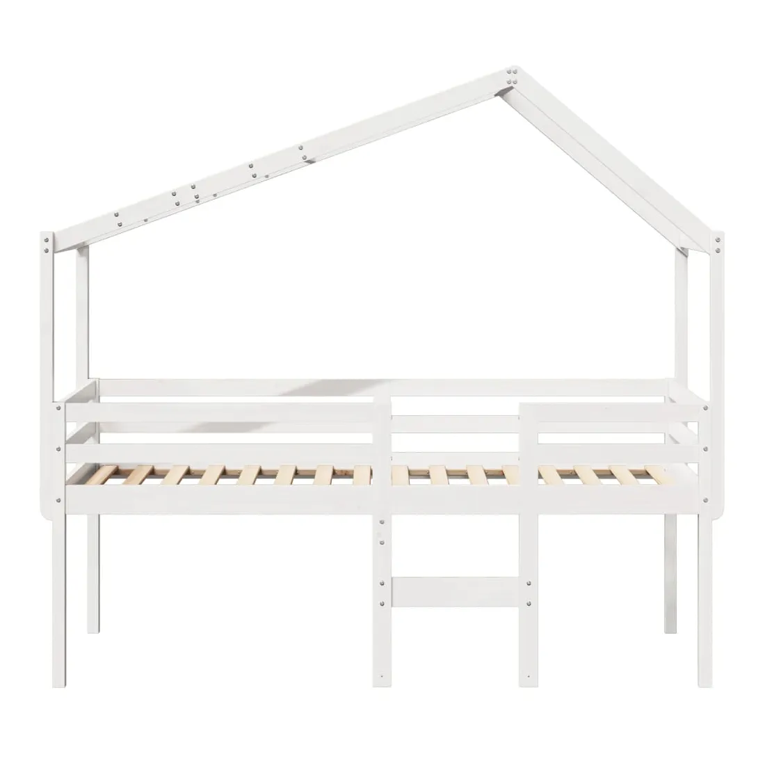 Ce lit haut, dont la polyvalence est au cœur de son design, est une combinaison parfaite de style moderne et élégant et de praticité. Il est idéal pour les petites pièces. Bois de pin massif : le bois de pin massif est un matériau naturel magnifique. Le bois de pin a un grain droit et les nœuds donnent au matériau son aspect caractéristique et rustique.Fonction pratique : le lit surélevé offre un excellent moyen d'utiliser l'espace au sol dans la chambre de votre enfant, vous pouvez le combiner avec un rideau de jeu cool, un matelas de jeu et un panneau d'abri comme un coin de jeu ou utiliser la zone en dessous pour le stockage. Les lattes de contreplaqué offrent un soutien supplémentaire à votre lit. Elles prolongent la durée de vie de votre matelas en absorbant la majeure partie du stress et du poids du lit.Design sûr : l'échelle intégrée du lit surélevé facilite l'entrée et la sortie du lit, et les garde-corps garantissent la sécurité de vos jeunes pendant qu'ils dorment.Très amusant : en combinant le toit avec le lit de votre enfant, vous pouvez créer une cachette qui permettra à votre enfant de s'amuser à l'heure du coucher. Cette addition innovante non seulement sera un point focal passionnant, mais aussi apportera de la fantaisie et de l'amusement dans la chambre d'enfant.Porte latérale ouverte : le toit est doté d'une porte latérale ouverte qui permet à vos enfants d'entrer et de sortir facilement du lit. Bon à savoir :Un matelas n'est pas inclus avec ce lit. Nous offrons une sélection variée de matelas. Vous pouvez consulter notre boutique pour trouver un matelas assorti.