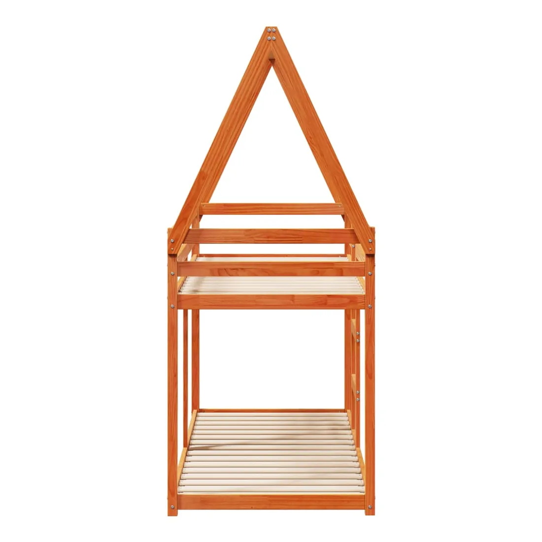 Ce lit superposé pour enfants avec toit est élégant et fonctionnel, ce qui en fait un ajout parfait à toute pièce avec un espace limité. Bois de pin massif : le bois de pin massif est un matériau naturel magnifique. Le bois de pin a un grain droit et les nœuds donnent au matériau son aspect caractéristique et rustique.Design sûr : le lit surélevé est conçu dans un souci de sécurité. Il comprend des garde-corps qui empêchent l'utilisateur de rouler pendant son sommeil.Lattes de contreplaqué : les lattes de contreplaqué assurent une bonne répartition du poids, garantissant que le matelas reste en place à chaque torsion de votre corps pendant le sommeil.Très amusant : en combinant le toit avec le lit de votre enfant, vous pouvez créer une cachette qui permettra à votre enfant de s'amuser à l'heure du coucher. Cette addition innovante non seulement sera un point focal passionnant, mais aussi apportera de la fantaisie et de l'amusement dans la chambre d'enfant.Convient aux espaces limités : le cadre de lit est un excellent choix pour toute pièce dont l'espace est limité, il fournit deux lits individuels avec un design compact.Porte latérale ouverte : le toit est doté d'une porte latérale ouverte qui permet à vos enfants d'entrer et de sortir facilement du lit. Bon à savoir :Un matelas n'est pas inclus avec ce lit. Nous offrons une sélection variée de matelas. Vous pouvez consulter notre boutique pour trouver un matelas assorti.