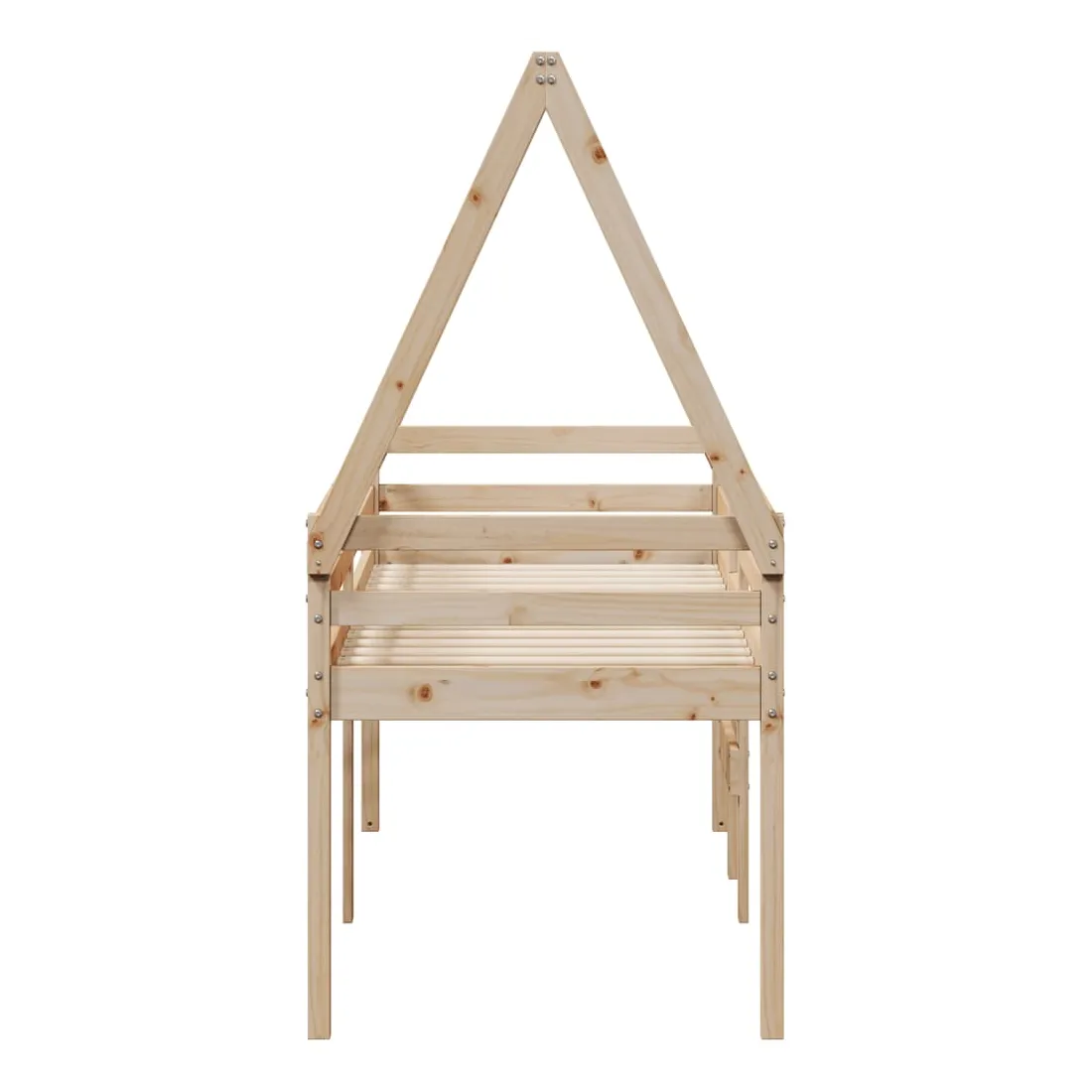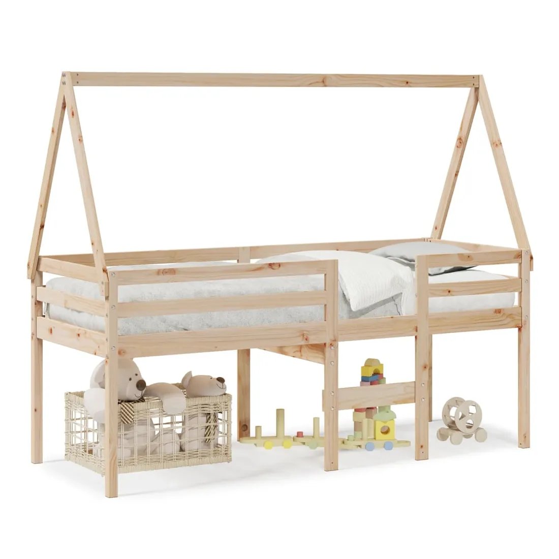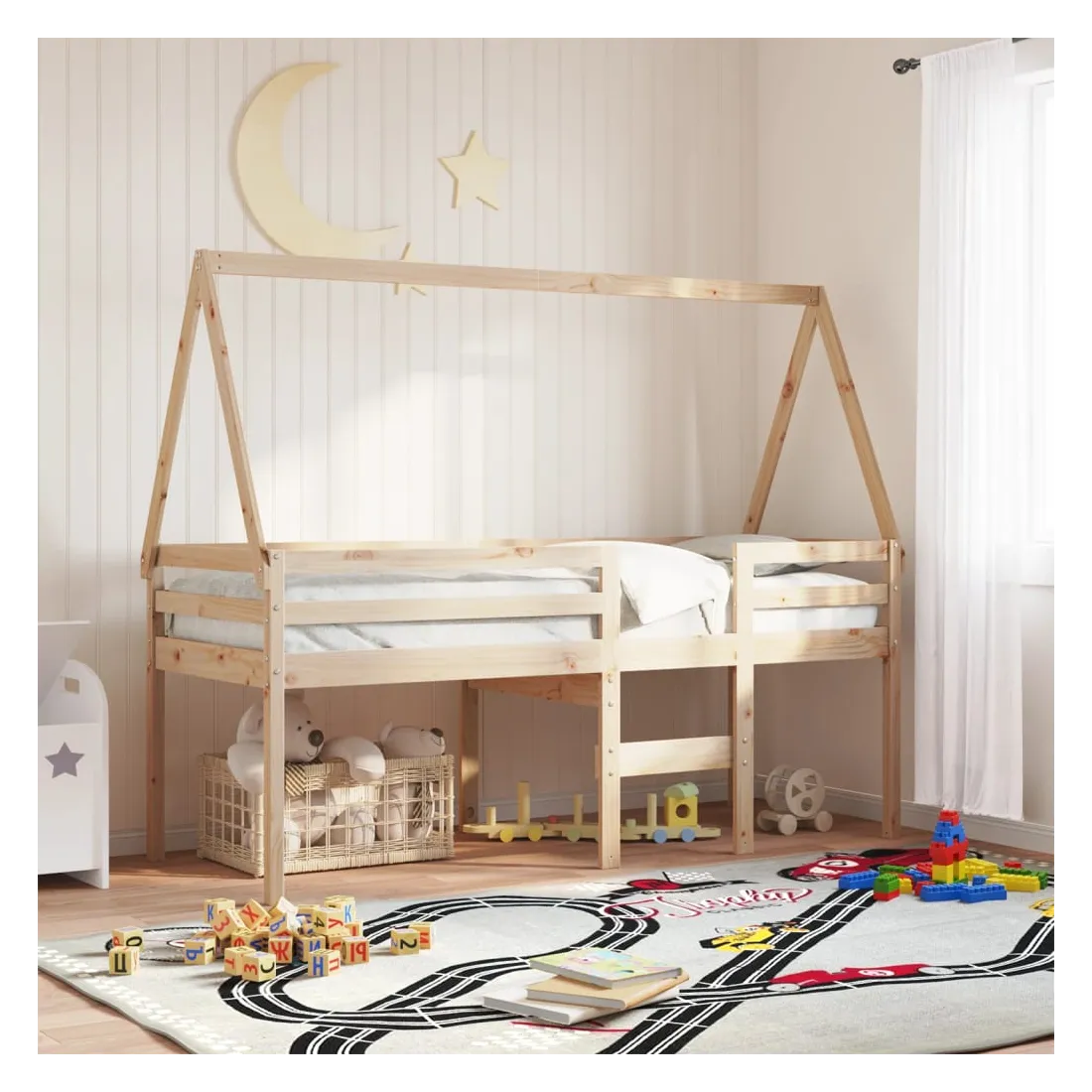 Ce lit haut, dont la polyvalence est au cœur de son design, est une combinaison parfaite de style moderne et élégant et de praticité. Il est idéal pour les petites pièces. Bois de pin massif : le bois de pin massif est un matériau naturel magnifique. Le bois de pin a un grain droit et les nœuds donnent au matériau son aspect caractéristique et rustique.Fonction pratique : le lit surélevé offre un excellent moyen d'utiliser l'espace au sol dans la chambre de votre enfant, vous pouvez le combiner avec un rideau de jeu cool, un matelas de jeu et un panneau d'abri comme un coin de jeu ou utiliser la zone en dessous pour le stockage. Les lattes en contreplaqué offrent un soutien supplémentaire à votre lit. Elles prolongent la durée de vie de votre matelas en absorbant la majeure partie de la tension et du poids du lit.Design sûr : l'échelle intégrée du lit surélevé facilite l'entrée et la sortie du lit, et les garde-corps garantissent la sécurité de vos jeunes pendant qu'ils dorment.Très amusant : en combinant le toit avec le lit de votre enfant, vous pouvez créer une cachette qui permettra à votre enfant de s'amuser à l'heure du coucher. Cette addition innovante non seulement sera un point focal passionnant, mais aussi apportera de la fantaisie et de l'amusement dans la chambre d'enfant.Porte latérale ouverte : le toit est doté d'une porte latérale ouverte qui permet à vos enfants d'entrer et de sortir facilement du lit. Bon à savoir :Un matelas n'est pas inclus avec ce lit. Nous offrons une sélection variée de matelas. Vous pouvez consulter notre boutique pour trouver un matelas assorti.
