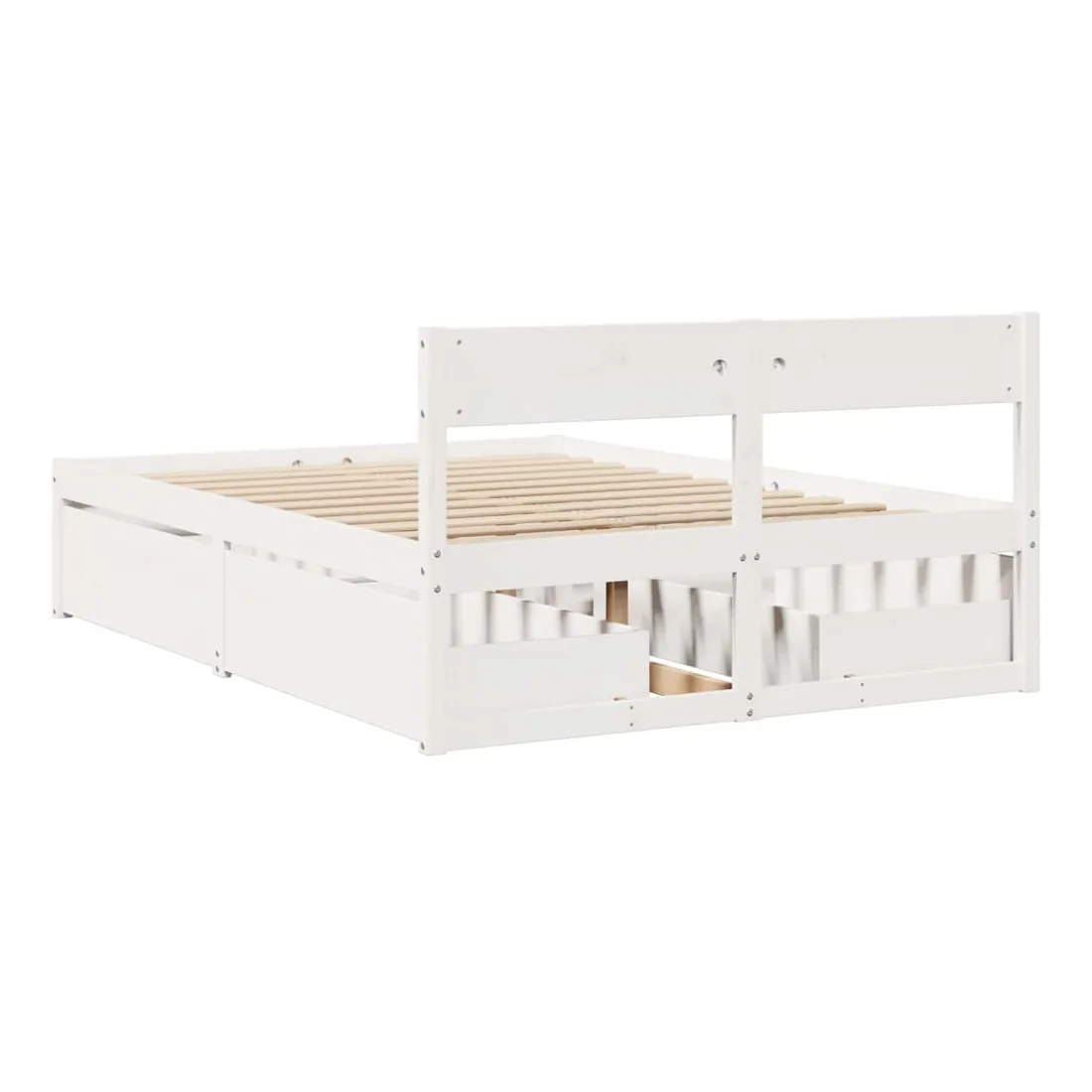 Ajoutez une touche moderne à votre chambre à coucher avec ce cadre de lit avec tiroirs ! Il apportera une touche pratique et décorative à votre espace de vie. Cadre stable et durable : le bois de pin massif est connu pour sa résistance et sa durabilité. Ses grains droits et ses nœuds distinctifs contribuent à son charme rustique.Lattes de contreplaqué : les lattes de contreplaqué assurent une bonne répartition du poids, garantissant que le matelas reste en place à chaque torsion de votre corps pendant le sommeil.Fonction de rangement : les tiroirs de lit inclus offrent suffisamment d'espace de rangement pour ranger vos articles essentiels, gardant votre pièce propre et bien rangée.Tête de lit polyvalente : ce cadre de lit est équipé d'une tête de lit qui offre un excellent soutien dorsal lorsque vous vous asseyez dans le lit pour lire ou regarder la télévision, tout en servant d'élément décoratif. Bon à savoir :Un matelas n'est pas inclus avec ce lit. Nous offrons une sélection variée de matelas. Vous pouvez consulter notre boutique pour trouver un matelas assorti.