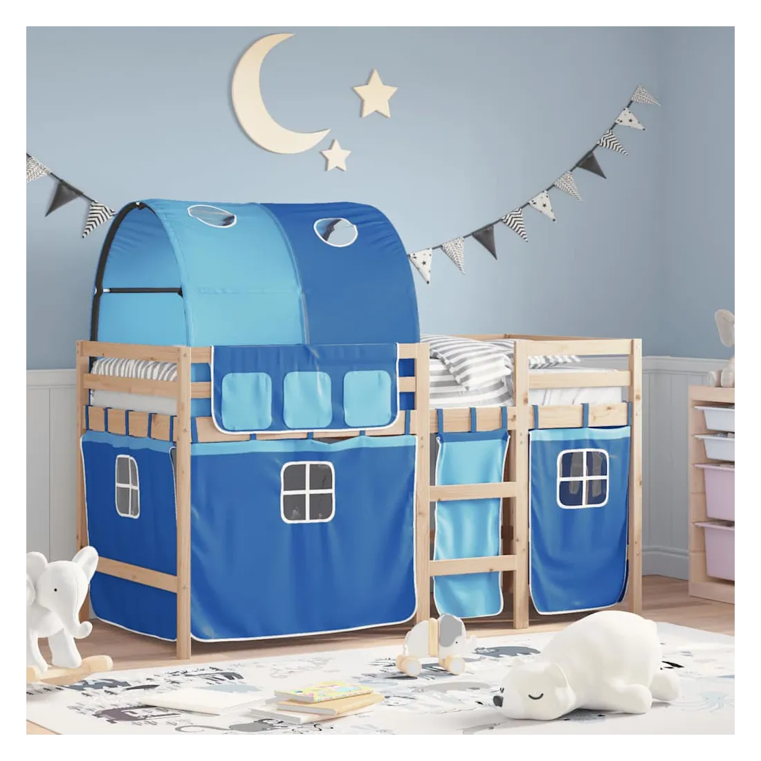 Ce lit mezzanine pour enfants a été fabriqué en pin massif et est conçu pour recevoir et optimiser l'espace. Construction en bois stable : ce lit intermédiaire est fabriqué en bois de pin massif pour plus de stabilité et de durabilité. Le bois de pin a un grain droit et les nœuds donnent au matériau son aspect rustique caractéristique.Utilisation complète de l'espace : ce lit mezzanine simple est surélevé de 78,5 cm au-dessus du sol, offrant suffisamment d'espace en dessous pour le rangement ou d'autres activités. Cet espace peut être utilisé pour empiler des boîtes de rangement, ranger de gros jouets ou même placer un canapé pour enfants pour lire. De plus, votre enfant peut utiliser l'espace sous le cadre de lit en bois comme base secrète et profiter de jeux imaginatifs.Barrières de sécurité : le lit mezzanine pour enfants est équipé de garde-corps de sécurité sur les 4 côtés, afin que votre enfant puisse dormir sans craindre de tomber.Échelle pratique : ce lit mezzanine pour enfants est doté d'une échelle qui permet de monter et de descendre dans et du lit en toute simplicité. Elle apporte également de la joie et transforme leur chambre en terrain de jeu intérieur. Bon à savoir :Un matelas n'est pas inclus avec ce lit. Nous offrons une sélection variée de matelas. Vous pouvez consulter notre boutique pour trouver un matelas assorti. Attention :Pour éviter qu'il ne bascule, ce produit doit être utilisé avec le dispositif de fixation murale fourni.