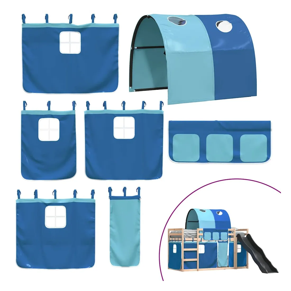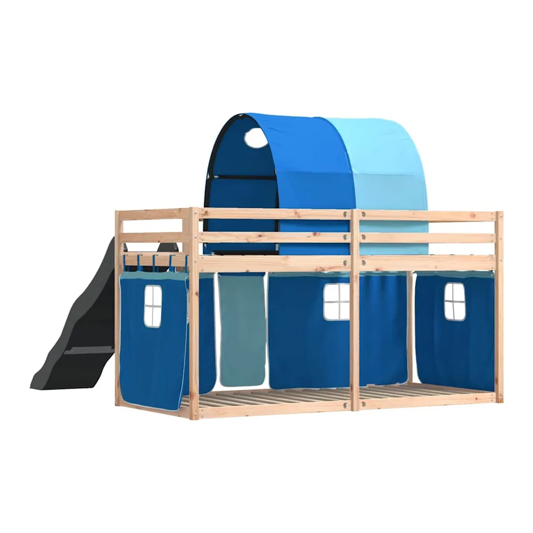 Ce lit superposé en bois est élégant et fonctionnel, ce qui en fait un supplément parfait à toute pièce dont l'espace est limité. Bois de pin massif : ce lit superposé est fabriqué en bois de pin massif pour plus de stabilité et de durabilité. Le bois de pin a un grain droit et les nœuds donnent au matériau son aspect rustique caractéristique.Très amusant : vous pouvez combiner les rideaux avec le lit superposé bas pour créer la base secrète de votre enfant, ce qui permet de s’amuser à l’heure du coucher et d’ajouter un point d'intérêt à la chambre à coucher !Barrières de sécurité : le lit supérieur est équipé de garde-corps de sécurité sur les 4 côtés, afin que votre enfant puisse dormir sans craindre de tomber.Échelle et toboggan pratiques : ce lit superposé est doté d'un toboggan amusant qui apporte de la joie et transforme leur chambre en une aire de jeux intérieure. La combinaison d'une échelle d'escalade et d'un toboggan rend l'heure du coucher plus vivante et plus intéressante pour les enfants.Lattes robustes : les lattes de contreplaqué assurent une bonne répartition du poids, garantissant que le matelas reste en place à chaque torsion de votre corps pendant le sommeil. Bon à savoir :Un matelas n'est pas inclus avec ce lit. Nous offrons une sélection variée de matelas. Vous pouvez consulter notre boutique pour trouver un matelas assorti. Attention :Pour éviter qu'il ne bascule, ce produit doit être utilisé avec le dispositif de fixation murale fourni.