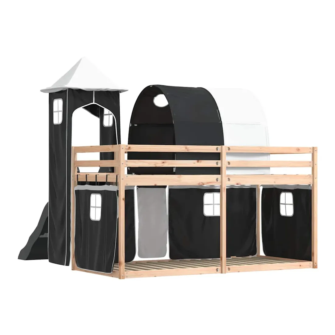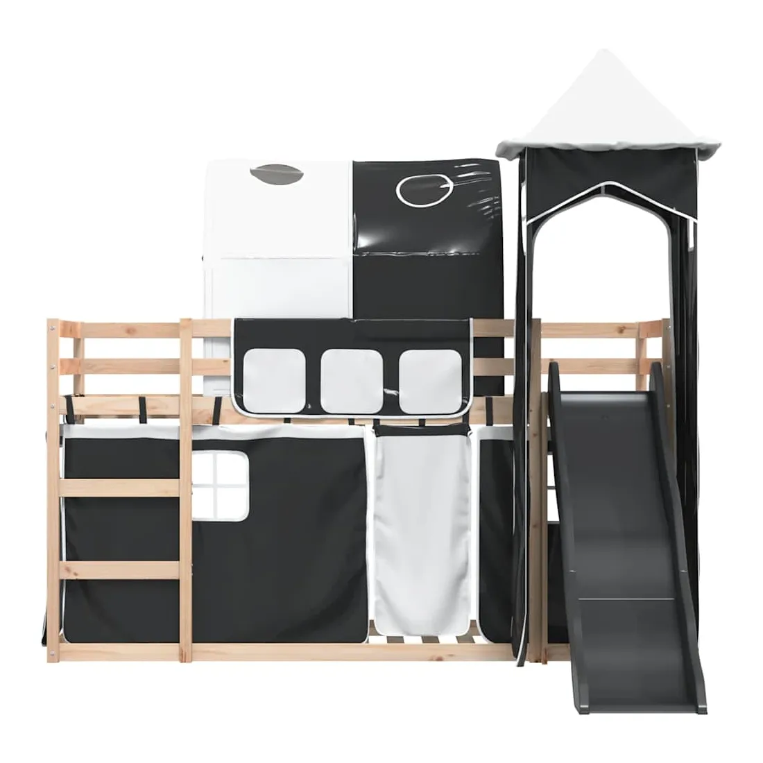 Ce lit superposé en bois est élégant et fonctionnel, ce qui en fait un supplément parfait à toute pièce dont l'espace est limité. Bois de pin massif : ce lit superposé est fabriqué en bois de pin massif pour plus de stabilité et de durabilité. Le bois de pin a un grain droit et les nœuds donnent au matériau son aspect rustique caractéristique.Très amusant : vous pouvez combiner les rideaux avec le lit superposé bas pour créer la base secrète de votre enfant, ce qui permet de s’amuser à l’heure du coucher et d’ajouter un point d'intérêt à la chambre à coucher !Barrières de sécurité : le lit supérieur est équipé de garde-corps de sécurité sur les 4 côtés, afin que votre enfant puisse dormir sans craindre de tomber.Échelle et toboggan pratiques : ce lit superposé est doté d'un toboggan amusant qui apporte de la joie et transforme leur chambre en une aire de jeux intérieure. La combinaison d'une échelle d'escalade et d'un toboggan rend l'heure du coucher plus vivante et plus intéressante pour les enfants.Lattes robustes : les lattes de contreplaqué assurent une bonne répartition du poids, garantissant que le matelas reste en place à chaque torsion de votre corps pendant le sommeil. Bon à savoir :Un matelas n'est pas inclus avec ce lit. Nous offrons une sélection variée de matelas. Vous pouvez consulter notre boutique pour trouver un matelas assorti. Attention :Pour éviter qu'il ne bascule, ce produit doit être utilisé avec le dispositif de fixation murale fourni.