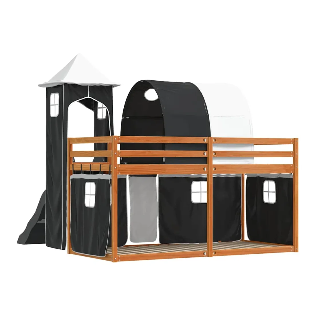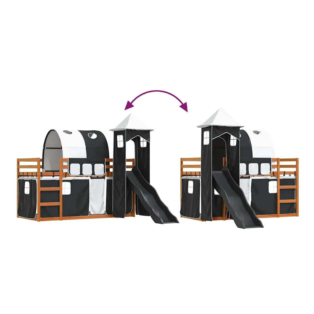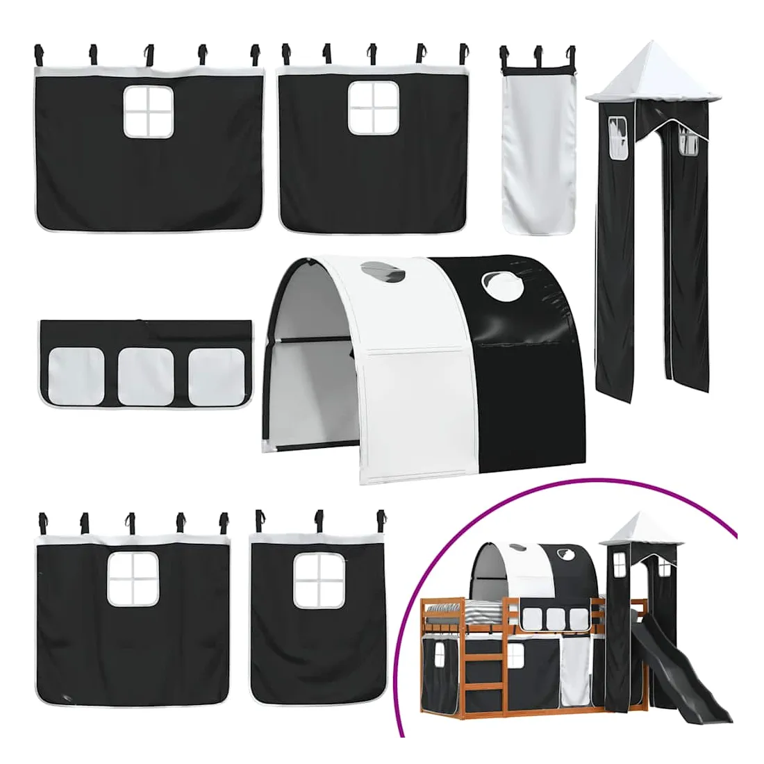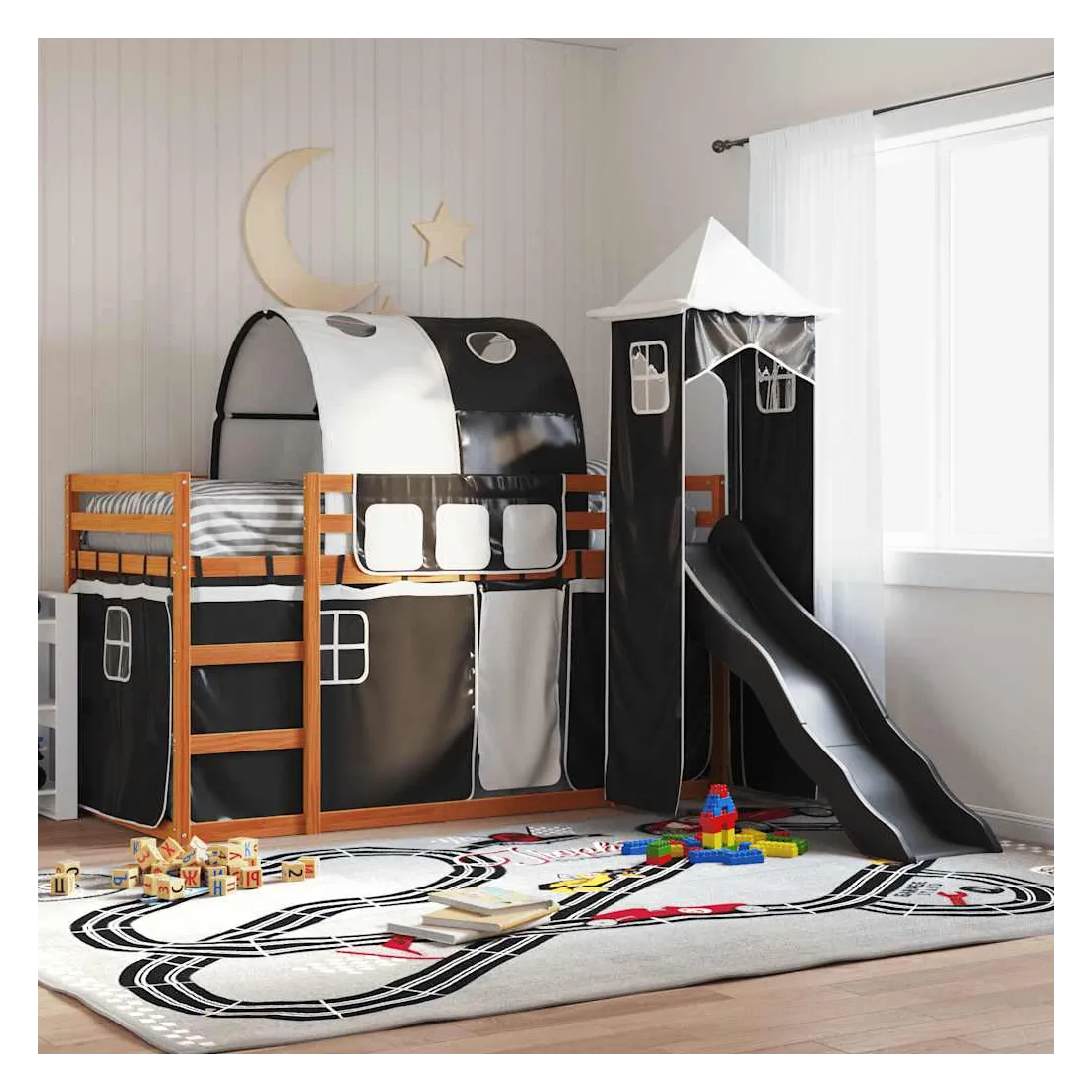 Ce lit superposé en bois est élégant et fonctionnel, ce qui en fait un supplément parfait à toute pièce dont l'espace est limité. Bois de pin massif : ce lit superposé est fabriqué en bois de pin massif pour plus de stabilité et de durabilité. Le bois de pin a un grain droit et les nœuds donnent au matériau son aspect rustique caractéristique.Très amusant : vous pouvez combiner les rideaux avec le lit superposé bas pour créer la base secrète de votre enfant, ce qui permet de s’amuser à l’heure du coucher et d’ajouter un point d'intérêt à la chambre à coucher !Barrières de sécurité : le lit supérieur est équipé de garde-corps de sécurité sur les 4 côtés, afin que votre enfant puisse dormir sans craindre de tomber.Échelle et toboggan pratiques : ce lit superposé est doté d'un toboggan amusant qui apporte de la joie et transforme leur chambre en une aire de jeux intérieure. La combinaison d'une échelle d'escalade et d'un toboggan rend l'heure du coucher plus vivante et plus intéressante pour les enfants.Lattes robustes : les lattes de contreplaqué assurent une bonne répartition du poids, garantissant que le matelas reste en place à chaque torsion de votre corps pendant le sommeil. Bon à savoir :Un matelas n'est pas inclus avec ce lit. Nous offrons une sélection variée de matelas. Vous pouvez consulter notre boutique pour trouver un matelas assorti. Attention :Pour éviter qu'il ne bascule, ce produit doit être utilisé avec le dispositif de fixation murale fourni.