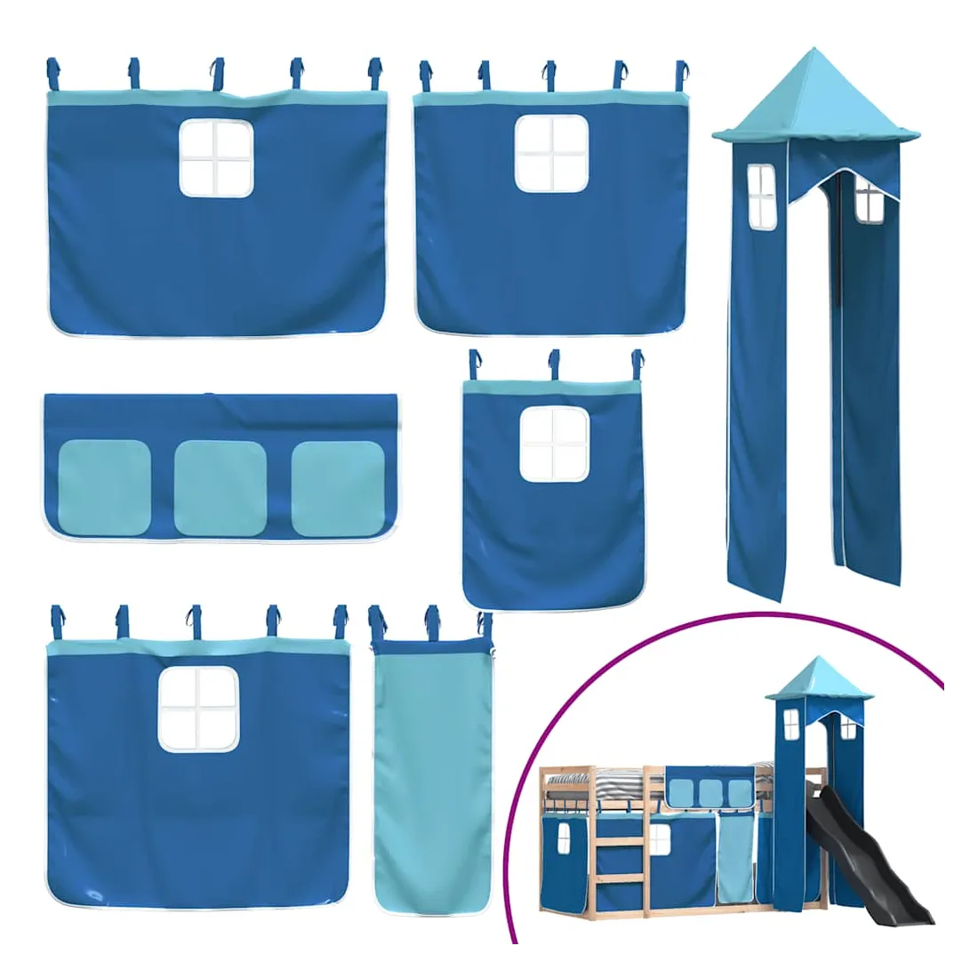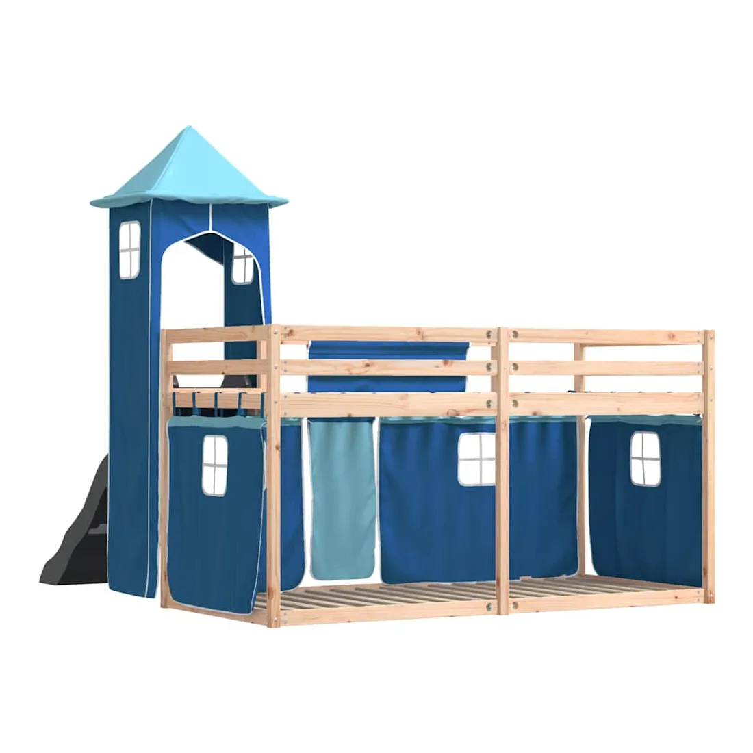 Ce lit superposé en bois est élégant et fonctionnel, ce qui en fait un supplément parfait à toute pièce dont l'espace est limité. Bois de pin massif : ce lit superposé est fabriqué en bois de pin massif pour plus de stabilité et de durabilité. Le bois de pin a un grain droit et les nœuds donnent au matériau son aspect rustique caractéristique.Très amusant : vous pouvez combiner les rideaux avec le lit superposé bas pour créer la base secrète de votre enfant, ce qui permet de s’amuser à l’heure du coucher et d’ajouter un point d'intérêt à la chambre à coucher !Barrières de sécurité : le lit supérieur est équipé de garde-corps de sécurité sur les 4 côtés, afin que votre enfant puisse dormir sans craindre de tomber.Échelle et toboggan pratiques : ce lit superposé est doté d'un toboggan amusant qui apporte de la joie et transforme leur chambre en une aire de jeux intérieure. La combinaison d'une échelle d'escalade et d'un toboggan rend l'heure du coucher plus vivante et plus intéressante pour les enfants.Lattes robustes : les lattes de contreplaqué assurent une bonne répartition du poids, garantissant que le matelas reste en place à chaque torsion de votre corps pendant le sommeil. Bon à savoir :Un matelas n'est pas inclus avec ce lit. Nous offrons une sélection variée de matelas. Vous pouvez consulter notre boutique pour trouver un matelas assorti. Attention :Pour éviter qu'il ne bascule, ce produit doit être utilisé avec le dispositif de fixation murale fourni.