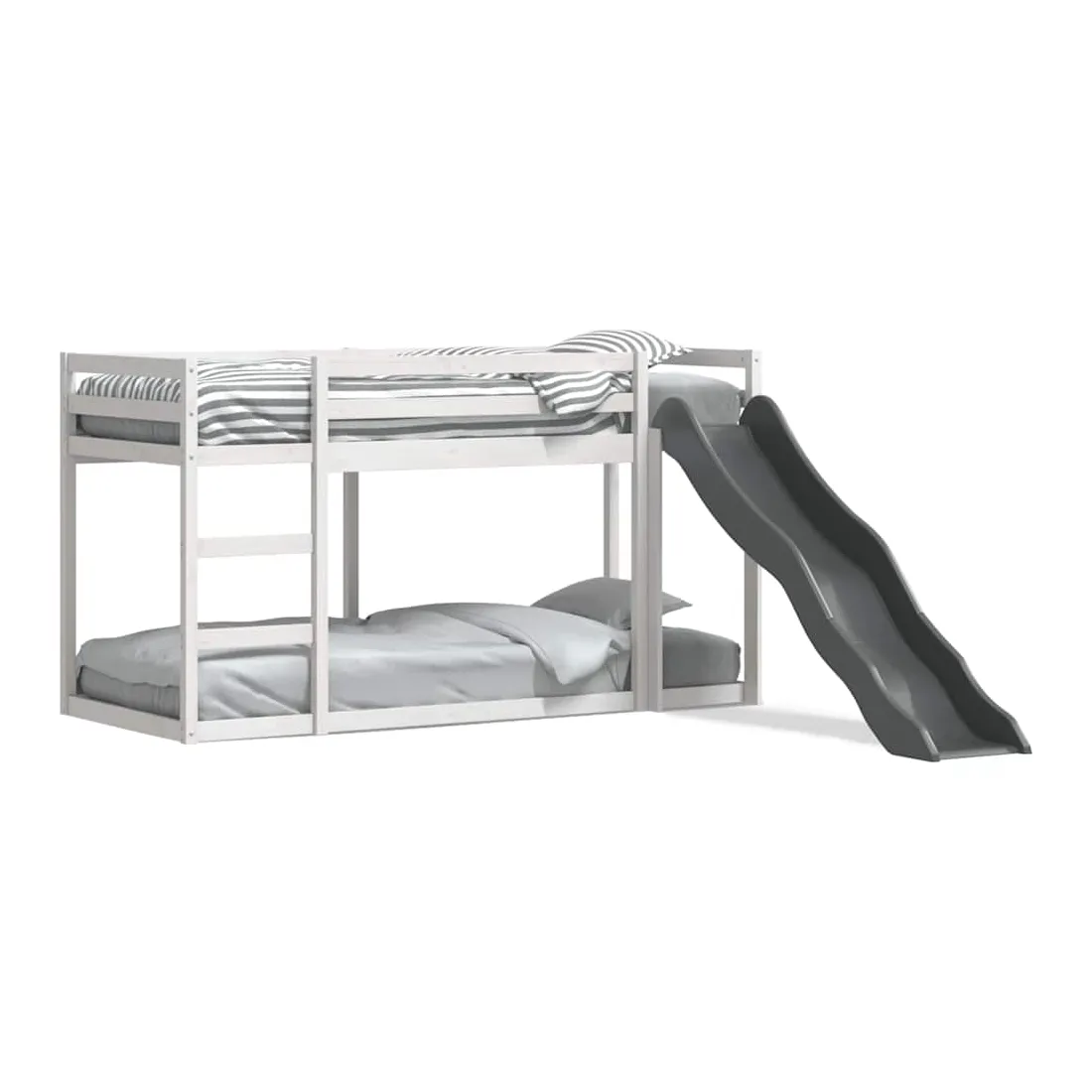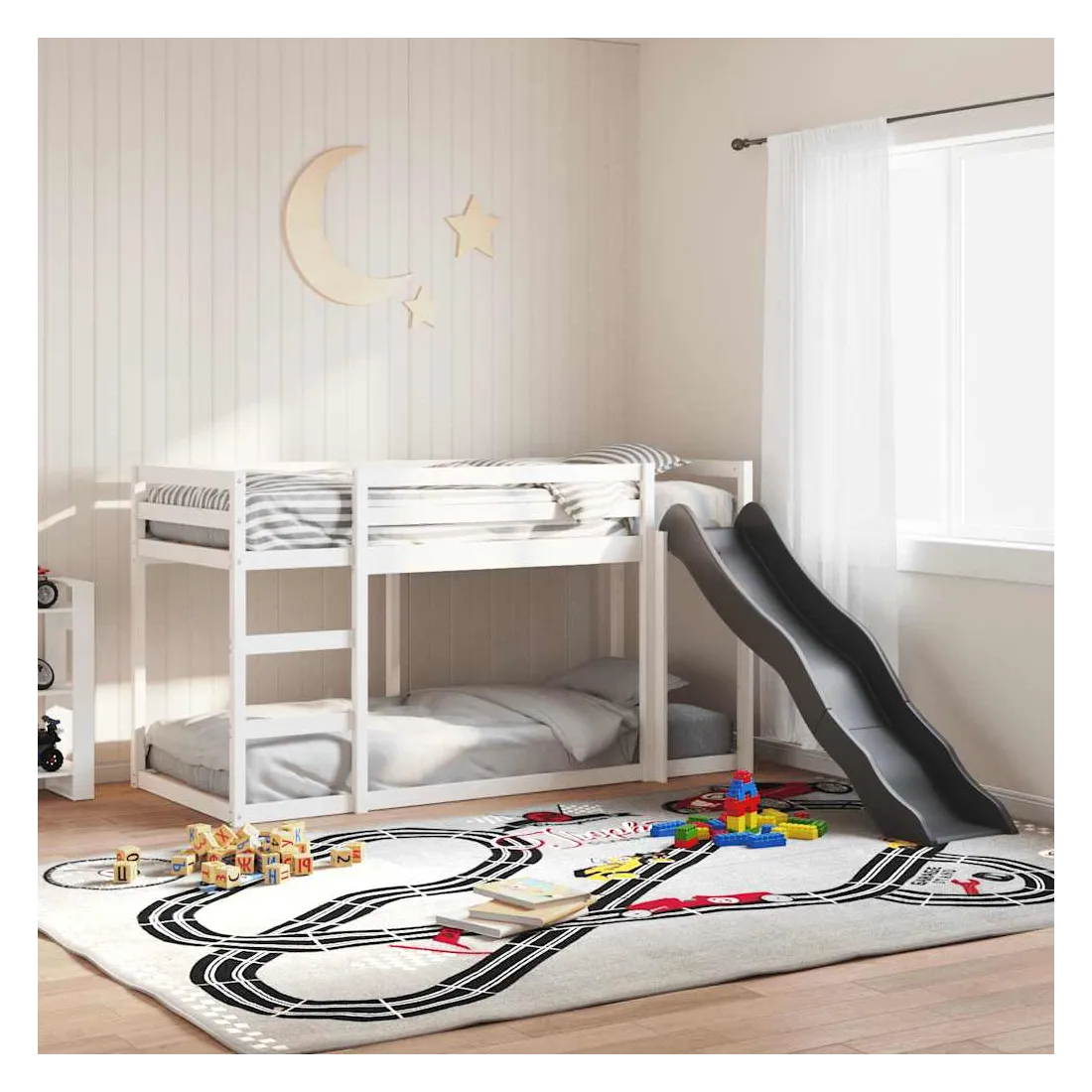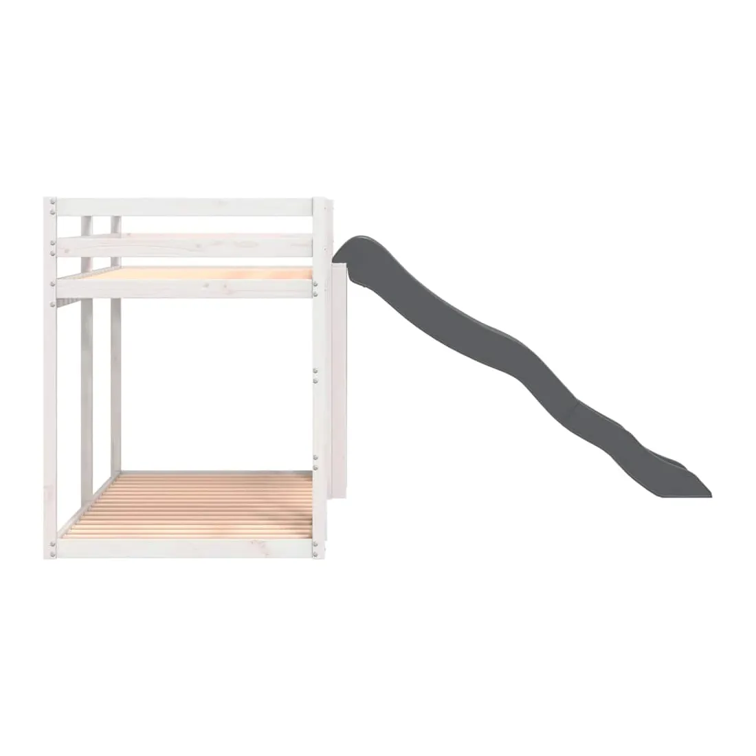 Ce lit superposé en bois avec toboggan et échelle est conçu pour divertir et optimiser l'espace. Robuste et stable : le bois de pin massif est connu pour sa résistance et sa durabilité. Ses grains droits et ses nœuds distinctifs contribuent à son charme rustique.Barrières de sécurité : le lit mezzanine pour enfants est équipé de garde-corps de sécurité sur les 4 côtés, afin que votre enfant puisse dormir sans craindre de tomber.Pleine utilisation de l'espace : le lit inférieur de ce lit superposé pour enfants est posé sur le sol, ce qui vous permet de placer un matelas au niveau inférieur ou d'utiliser le niveau inférieur comme espace de rangement ou de jeu.Échelle et toboggan pratiques : ce lit mi-hauteur pour enfants est doté d'un toboggan amusant qui apporte de la joie et transforme leur chambre en une aire de jeux intérieure. La combinaison d'une échelle d'escalade et d'un toboggan rend l'heure du coucher plus vivante et plus intéressante pour les enfants. Bon à savoir :La livraison comprend uniquement les cadres de lit. Les matelas ne sont pas inclus. Vous pouvez consulter notre boutique pour trouver les matelas assortis. Attention :Pour éviter qu'il ne bascule, ce produit doit être utilisé avec le dispositif de fixation murale fourni.