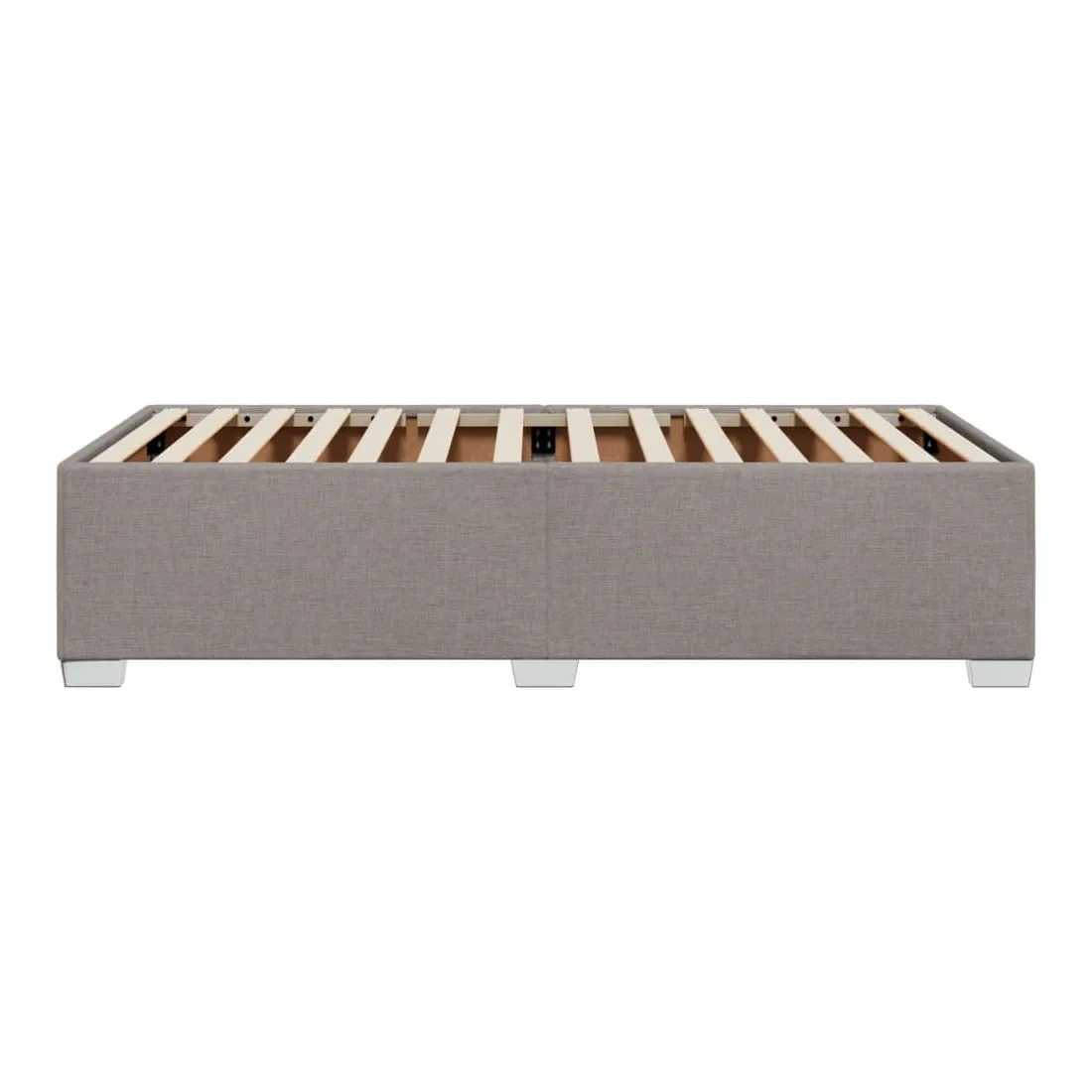 Profitez d'une meilleure nuit de sommeil reposante grâce à ce cadre de lit ! Il est un supplément accueillant à toute chambre à coucher. Matériau doux et durable : le tissu en polyester allie douceur, respirabilité et durabilité, vous garantissant un confort et une convivialité ultimes.Lattes pour un soutien optimal : ce cadre de lit est complété par des lattes pour offrir un soutien et une respirabilité essentiels à votre matelas.Pieds stables et durables : ce lit est soutenu par des pieds robustes, ce qui garantit sa stabilité, sa sécurité et sa fermeté. Bon à savoir :Un matelas n'est pas inclus avec ce lit. Nous offrons une sélection variée de matelas. Vous pouvez consulter notre boutique pour trouver un matelas assorti.