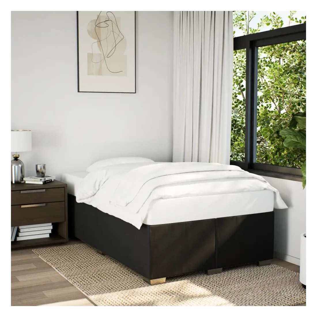 Profitez d'une meilleure nuit de sommeil reposante grâce à ce cadre de lit ! Il est un supplément accueillant à toute chambre à coucher. Matériau doux et durable : le tissu en polyester allie douceur, respirabilité et durabilité, vous garantissant un confort et une convivialité ultimes.Lattes pour un soutien optimal : ce cadre de lit est complété par des lattes pour offrir un soutien et une respirabilité essentiels à votre matelas.Pieds stables et durables : ce lit est soutenu par des pieds robustes, ce qui garantit sa stabilité, sa sécurité et sa fermeté. Bon à savoir :Un matelas n'est pas inclus avec ce lit. Nous offrons une sélection variée de matelas. Vous pouvez consulter notre boutique pour trouver un matelas assorti.