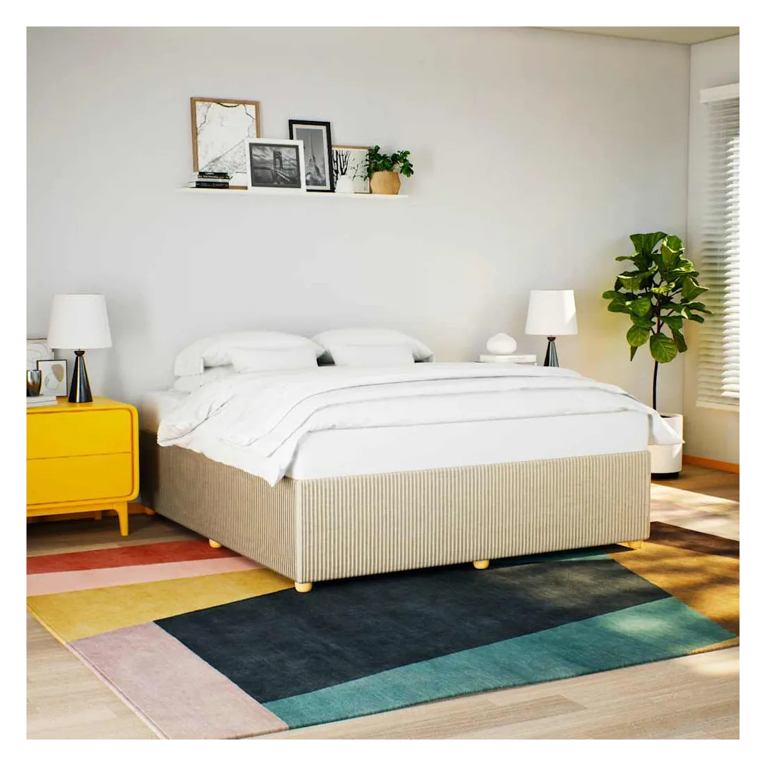 Profitez d'une meilleure nuit de sommeil reposante grâce à ce cadre de lit ! Il est un supplément accueillant à toute chambre à coucher. Matériau doux et durable : le tissu en polyester allie douceur, respirabilité et durabilité, vous garantissant un confort et une convivialité ultimes.Lattes pour un soutien optimal : ce cadre de lit est complété par des lattes pour offrir un soutien et une respirabilité essentiels à votre matelas.Pieds stables et durables : ce lit est soutenu par des pieds robustes, ce qui garantit sa stabilité, sa sécurité et sa fermeté. Bon à savoir :Un matelas n'est pas inclus avec ce lit. Nous offrons une sélection variée de matelas. Vous pouvez consulter notre boutique pour trouver un matelas assorti.