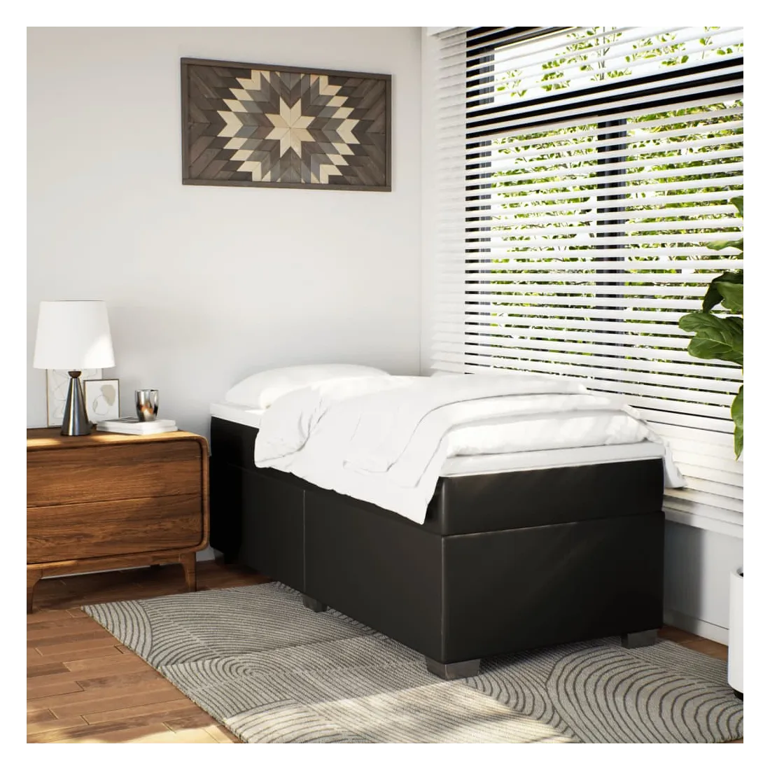 Utilisez ce lit à sommier pour profiter d'une nuit de sommeil réparatrice ! Il vous offre une relaxation maximale et un sommeil agréable. Similicuir durable : le similicuir de qualité supérieure est un matériau très durable. Il est résistant aux taches, ce qui le rend facile à nettoyer avec un chiffon humide. La surface lisse donne également un aspect luxueux et la beauté du cuir véritable.Matelas à ressorts ensachés : ce matelas à ressorts ensachés comporte des ressorts ensachés individuels qui fonctionnent indépendamment pour offrir un soutien personnalisé en réagissant uniquement à la pression exercée dans chaque zone. Cette conception empêche « l'enroulement » et réduit le transfert de mouvement par rapport aux matelas traditionnels à ressorts ouverts. Chaque ressort ensaché soutient le corps individuellement.Surmatelas confortable : ce surmatelas améliore le soutien et le confort grâce à sa surface douce et respirante, tout en prolongeant la durée de vie de votre matelas. Sa housse amovible permet un lavage facile, ce qui facilite l'entretien.Lattes pour un soutien optimal : le cadre de lit est complété par des lattes pour offrir un soutien et une respirabilité essentiels à votre matelas.Pieds stables et durables : ce lit est soutenu par des pieds robustes, ce qui garantit sa stabilité, sa sécurité et sa fermeté. Bon à savoir :Pour des raisons d'hygiène, le matelas ne peut pas être retourné si l'emballage est retiré ou ouvert.