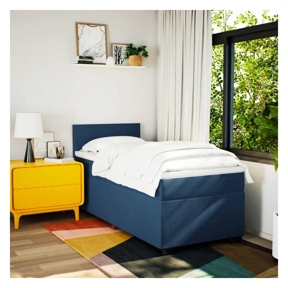 Utilisez ce lit à sommier pour profiter d'une nuit de sommeil réparatrice ! Il vous offre une relaxation maximale et un sommeil agréable. Matériau doux et durable : le tissu en polyester allie douceur, respirabilité et durabilité, vous garantissant un confort et une convivialité ultimes.Matelas à ressorts ensachés : ce matelas à ressorts ensachés comporte des ressorts ensachés individuels qui fonctionnent indépendamment pour offrir un soutien personnalisé en réagissant uniquement à la pression exercée dans chaque zone. Cette conception empêche « l'enroulement » et réduit le transfert de mouvement par rapport aux matelas traditionnels à ressorts ouverts. Chaque ressort ensaché soutient le corps individuellement.Surmatelas confortable : ce surmatelas améliore le soutien et le confort grâce à sa surface douce et respirante, tout en prolongeant la durée de vie de votre matelas. Sa housse amovible permet un lavage facile, ce qui facilite l'entretien.Excellent soutien : la tête de lit vous offre un excellent soutien du dos lorsque vous êtes assis dans votre lit pour lire ou regarder la télévision.Pieds stables et durables : ce lit est soutenu par des pieds robustes, ce qui garantit sa stabilité, sa sécurité et sa fermeté. Bon à savoir :Pour des raisons d'hygiène, le matelas ne peut pas être retourné si l'emballage est retiré ou ouvert.