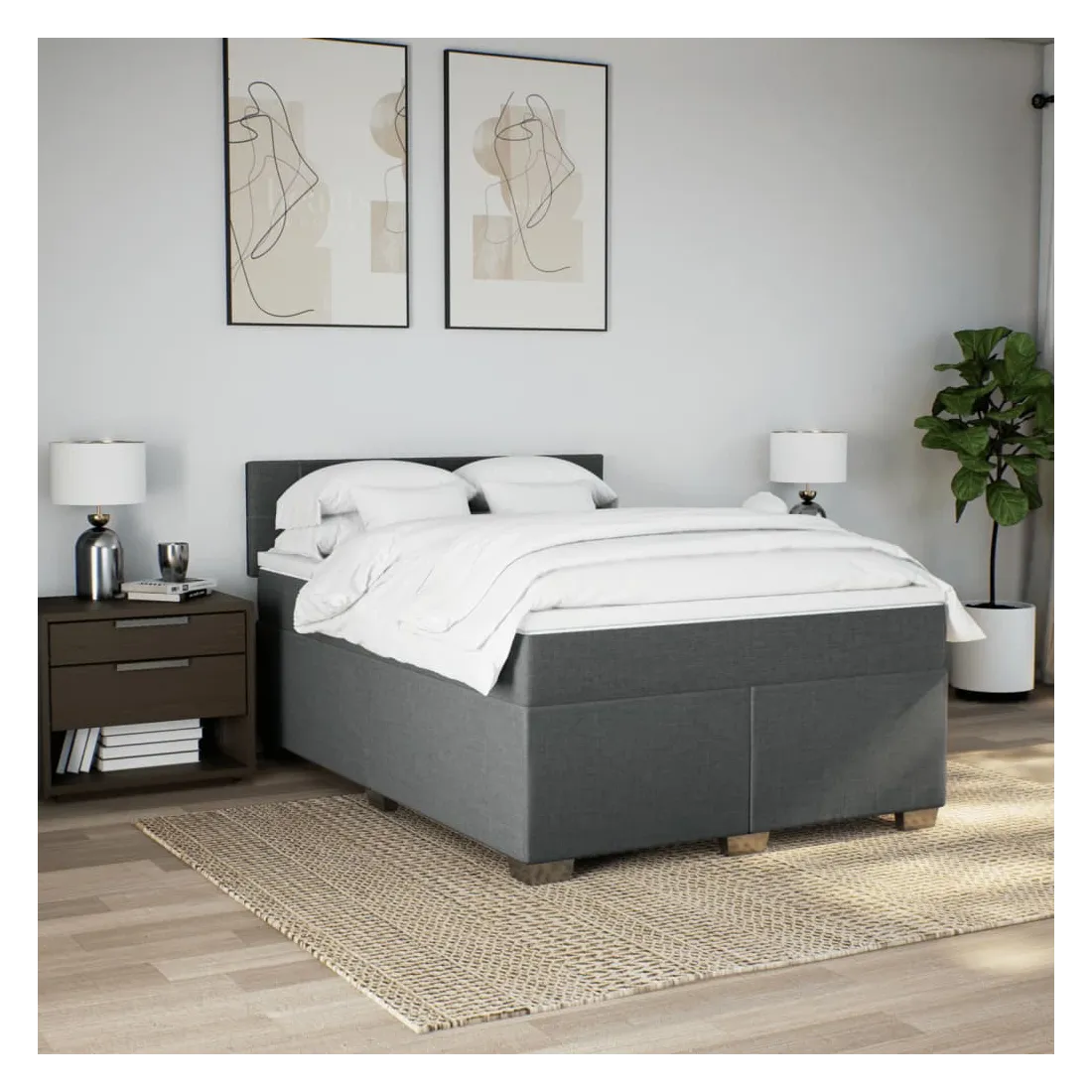 Sommier à lattes de lit avec matelas Gris foncé 140x200cm Tissu