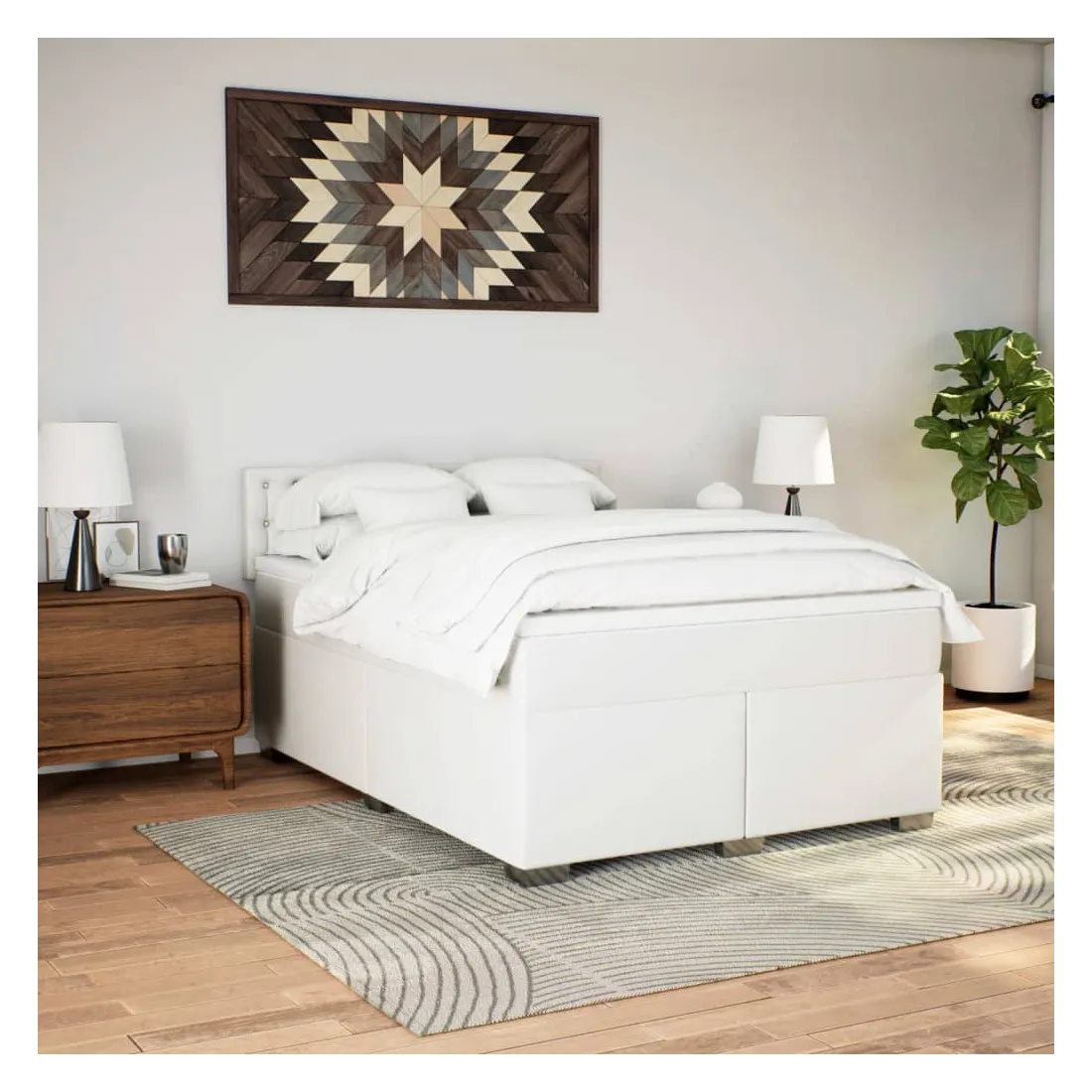 Sommier à lattes de lit avec matelas Blanc 140x190cm Similicuir