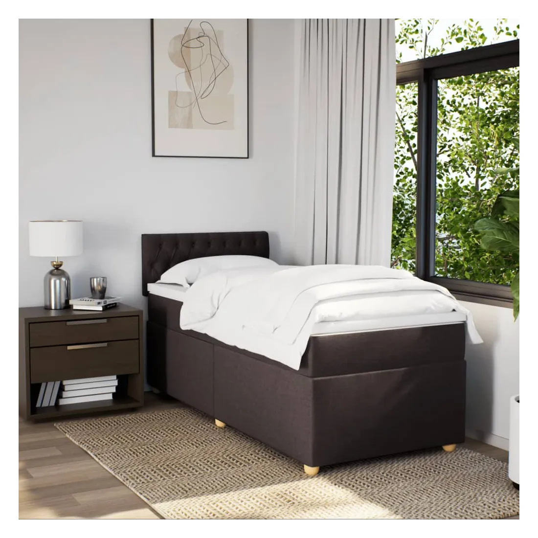 Utilisez ce lit à sommier pour profiter d'une nuit de sommeil réparatrice ! Il vous offre une relaxation maximale et un sommeil agréable. Matériau doux et durable : le tissu en polyester allie douceur, respirabilité et durabilité, vous garantissant un confort et une convivialité ultimes.Matelas à ressorts ensachés : ce matelas à ressorts ensachés comporte des ressorts ensachés individuels qui fonctionnent indépendamment pour offrir un soutien personnalisé en réagissant uniquement à la pression exercée dans chaque zone. Cette conception empêche « l'enroulement » et réduit le transfert de mouvement par rapport aux matelas traditionnels à ressorts ouverts. Chaque ressort ensaché soutient le corps individuellement.Surmatelas confortable : ce surmatelas améliore le soutien et le confort grâce à sa surface douce et respirante, tout en prolongeant la durée de vie de votre matelas. Sa housse amovible permet un lavage facile, ce qui facilite l'entretien.Lattes pour un soutien optimal : le cadre de lit est complété par des lattes pour offrir un soutien et une respirabilité essentiels à votre matelas. Bon à savoir :Pour des raisons d'hygiène, le matelas ne peut pas être retourné si l'emballage est retiré ou ouvert.