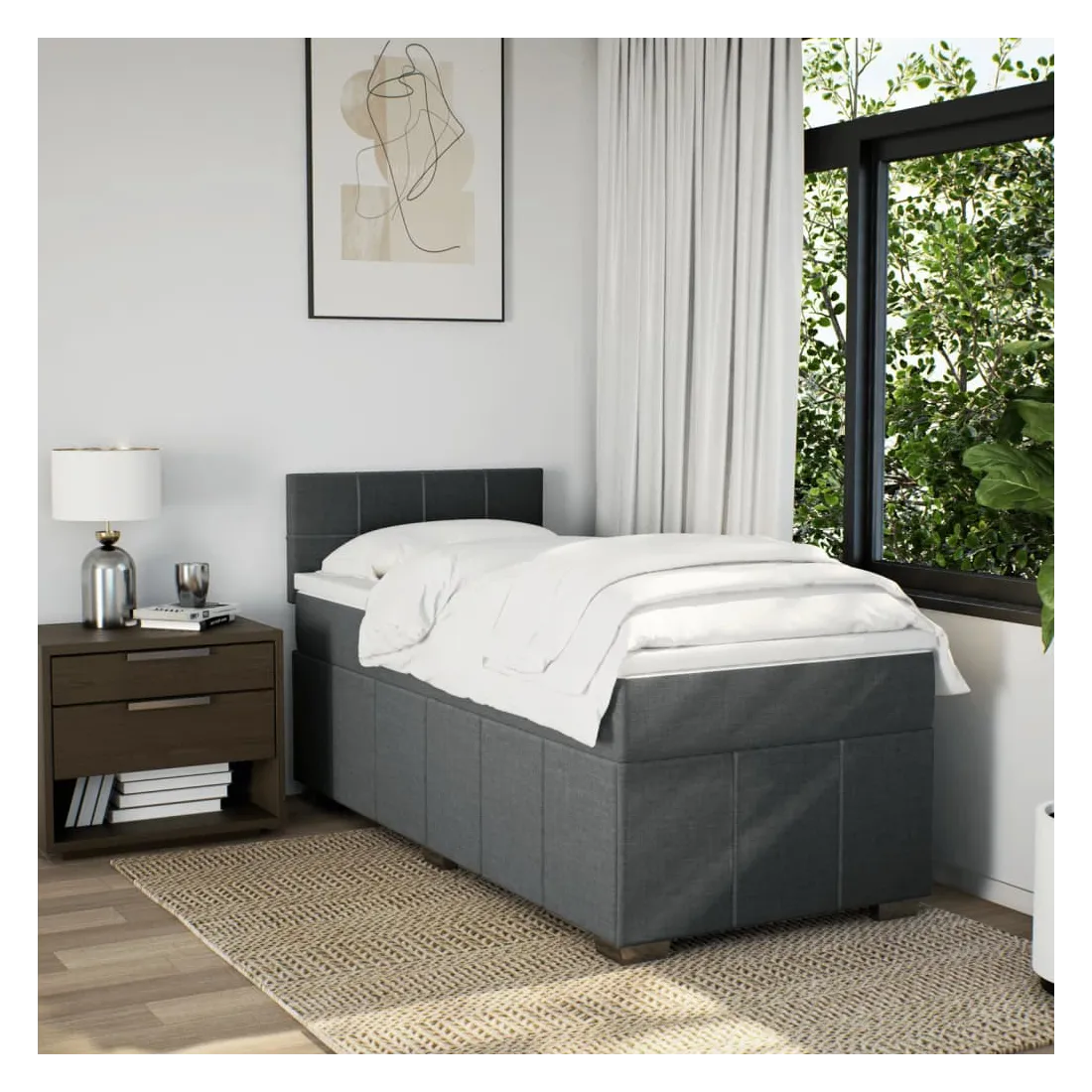 Utilisez ce lit à sommier pour profiter d'une nuit de sommeil réparatrice ! Il vous offre une relaxation maximale et un sommeil agréable. Matériau doux et durable : le tissu en polyester allie douceur, respirabilité et durabilité, vous garantissant un confort et une convivialité ultimes.Matelas à ressorts ensachés : ce matelas à ressorts ensachés comporte des ressorts ensachés individuels qui fonctionnent indépendamment pour offrir un soutien personnalisé en réagissant uniquement à la pression exercée dans chaque zone. Cette conception empêche « l'enroulement » et réduit le transfert de mouvement par rapport aux matelas traditionnels à ressorts ouverts. Chaque ressort ensaché soutient le corps individuellement.Tête de lit réglable en hauteur : la tête de lit est réglable en hauteur pour s'adapter à vos préférences.Surmatelas confortable : ce surmatelas améliore le soutien et le confort grâce à sa surface douce et respirante, tout en prolongeant la durée de vie de votre matelas. Sa housse amovible permet un lavage facile, ce qui facilite l'entretien.Lattes pour un soutien optimal : le cadre de lit est complété par des lattes pour offrir un soutien et une respirabilité essentiels à votre matelas. Bon à savoir :Pour des raisons d'hygiène, le matelas ne peut pas être retourné si l'emballage est retiré ou ouvert.