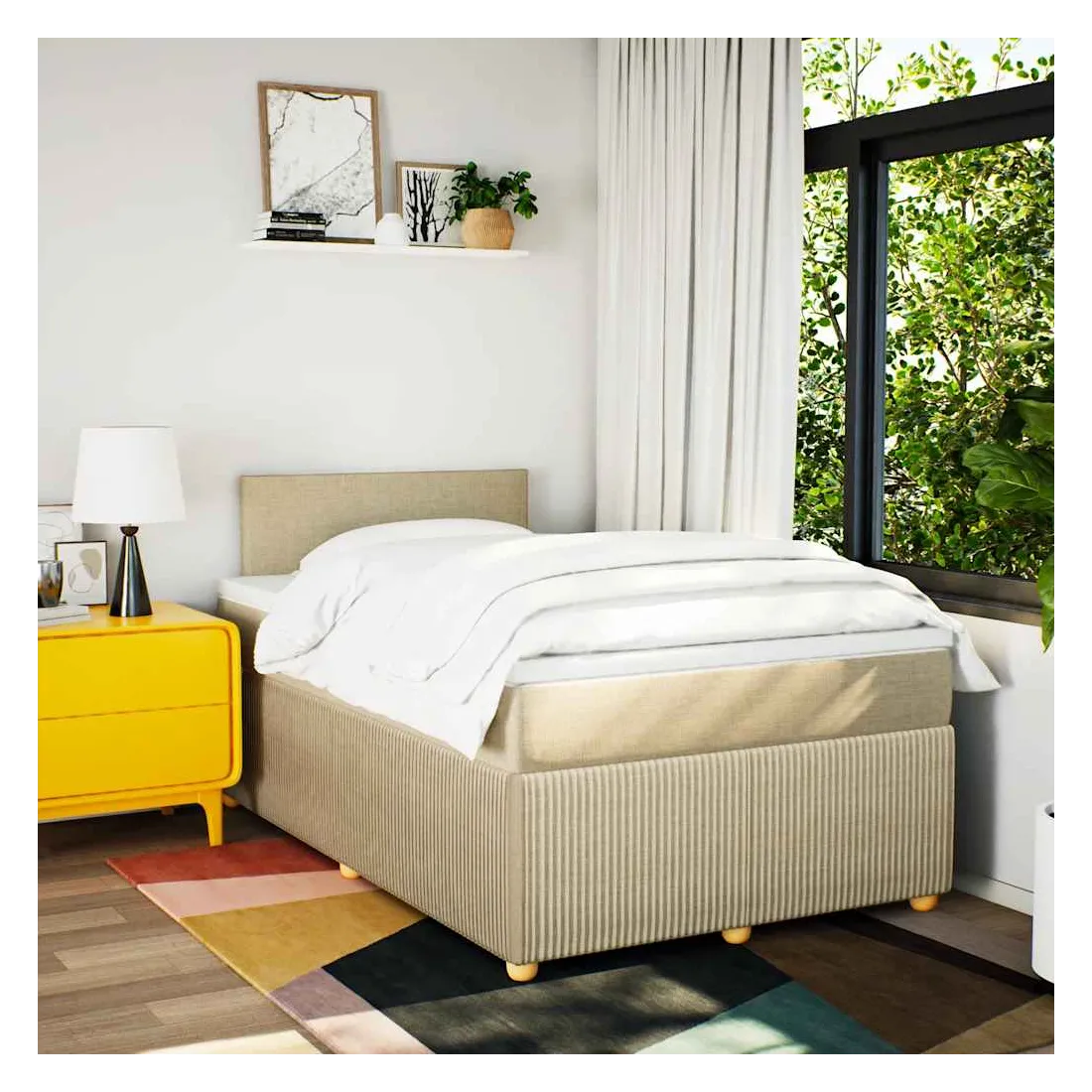 Utilisez ce lit à sommier pour profiter d'une nuit de sommeil réparatrice ! Il vous offre une relaxation maximale et un sommeil agréable. Matériau doux et durable : le tissu en polyester allie douceur, respirabilité et durabilité, vous garantissant un confort et une convivialité ultimes.Matelas à ressorts ensachés : ce matelas à ressorts ensachés comporte des ressorts ensachés individuels qui fonctionnent indépendamment pour offrir un soutien personnalisé en réagissant uniquement à la pression exercée dans chaque zone. Cette conception empêche « l'enroulement » et réduit le transfert de mouvement par rapport aux matelas traditionnels à ressorts ouverts. Chaque ressort ensaché soutient le corps individuellement.Surmatelas confortable : ce surmatelas améliore le soutien et le confort grâce à sa surface douce et respirante, tout en prolongeant la durée de vie de votre matelas. Sa housse amovible permet un lavage facile, ce qui facilite l'entretien.Lattes pour un soutien optimal : le cadre de lit est complété par des lattes pour offrir un soutien et une respirabilité essentiels à votre matelas. Bon à savoir :Pour des raisons d'hygiène, le matelas ne peut pas être retourné si l'emballage est retiré ou ouvert.