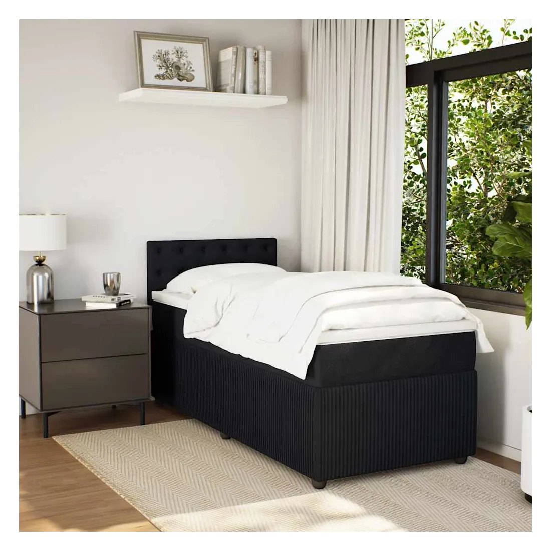 Utilisez ce lit à sommier pour profiter d'une nuit de sommeil réparatrice ! Il vous offre une relaxation maximale et un sommeil agréable. Matériau doux et confortable : le tissu en velours présente une surface douce et lisse qui offre une sensation agréable contre la peau, vous apportant chaleur et confort ultime.Matelas à ressorts ensachés : ce matelas à ressorts ensachés comporte des ressorts ensachés individuels qui fonctionnent indépendamment pour offrir un soutien personnalisé en réagissant uniquement à la pression exercée dans chaque zone. Cette conception empêche « l'enroulement » et réduit le transfert de mouvement par rapport aux matelas traditionnels à ressorts ouverts. Chaque ressort ensaché soutient le corps individuellement.Surmatelas confortable : ce surmatelas améliore le soutien et le confort grâce à sa surface douce et respirante, tout en prolongeant la durée de vie de votre matelas. Sa housse amovible permet un lavage facile, ce qui facilite l'entretien.Lattes pour un soutien optimal : le cadre de lit est complété par des lattes pour offrir un soutien et une respirabilité essentiels à votre matelas. Bon à savoir :Pour des raisons d'hygiène, le matelas ne peut pas être retourné si l'emballage est retiré ou ouvert.