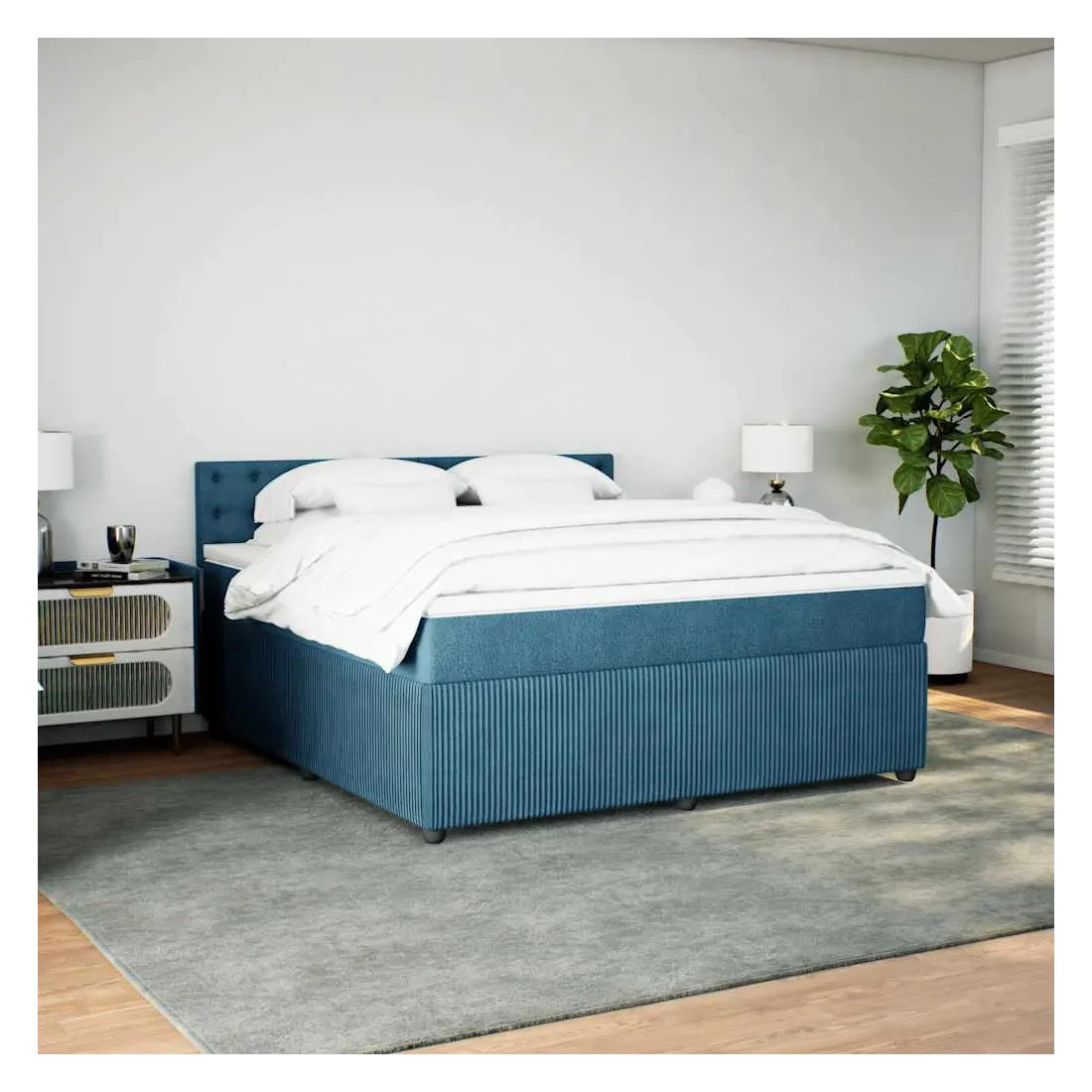 Sommier à lattes de lit et matelas bleu 180x200 cm velours