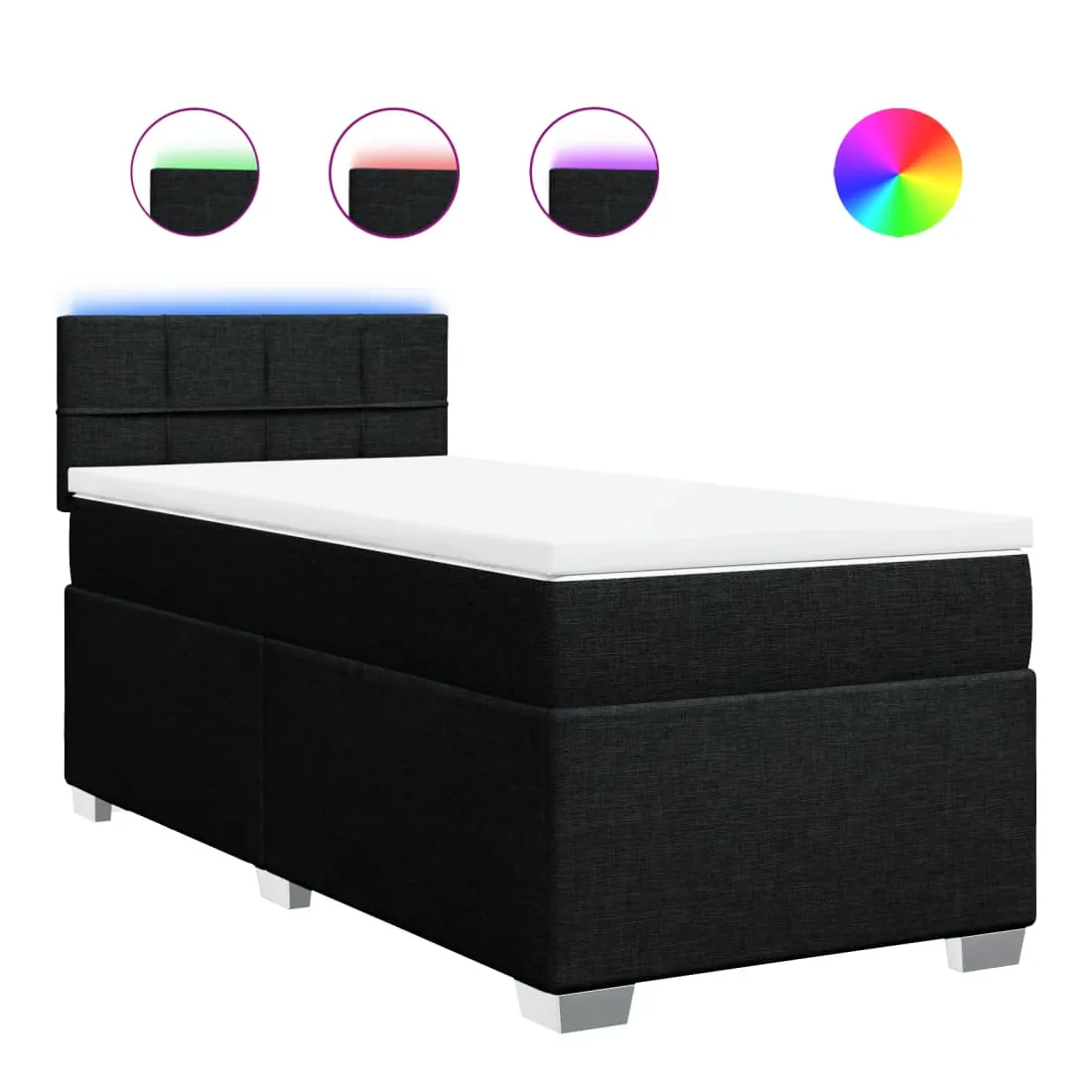 Utilisez ce lit à sommier pour profiter d'une nuit de sommeil réparatrice ! Il vous offre une relaxation maximale et un sommeil agréable. Matériau doux et durable : le tissu en polyester allie douceur, respirabilité et durabilité, vous garantissant un confort et une convivialité ultimes.Matelas à ressorts ensachés : ce matelas à ressorts ensachés comporte des ressorts ensachés individuels qui fonctionnent indépendamment pour offrir un soutien personnalisé en réagissant uniquement à la pression exercée dans chaque zone. Cette conception empêche « l'enroulement » et réduit le transfert de mouvement par rapport aux matelas traditionnels à ressorts ouverts. Chaque ressort ensaché soutient le corps individuellement.Lumières LED pour une ambiance agréable : ce lit est équipé de lumières LED qui peuvent être facilement réglées pour créer un spectacle lumineux personnalisé. Vous pouvez personnaliser les modes, les couleurs et la luminosité pour améliorer l'ambiance de votre espace intérieur.Surmatelas confortable : ce surmatelas améliore le soutien et le confort grâce à sa surface douce et respirante, tout en prolongeant la durée de vie de votre matelas. Sa housse amovible permet un lavage facile, ce qui facilite l'entretien. Bon à savoir :Ce produit est doté d'un connecteur USB qui nécessite une source d'alimentation USB de 5V certifiée (non incluse).Pour des raisons d'hygiène, le matelas ne peut pas être retourné si l'emballage est retiré ou ouvert.Seule la partie avec un symbole de ciseaux peut être coupée et seule la partie avec l'USB continuera à fonctionner comme avant.