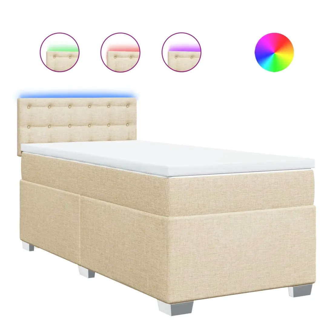 vidaXLUtilisez ce lit à sommier pour profiter d'une nuit de sommeil réparatrice ! Il vous offre une relaxation maximale et un sommeil agréable. Matériau doux et durable : le tissu en polyester allie douceur, respirabilité et durabilité, vous garantissant un confort et une convivialité ultimes.Matelas à ressorts ensachés : ce matelas à ressorts ensachés comporte des ressorts ensachés individuels qui fonctionnent indépendamment pour offrir un soutien personnalisé en réagissant uniquement à la pression exercée dans chaque zone. Cette conception empêche « l'enroulement » et réduit le transfert de mouvement par rapport aux matelas traditionnels à ressorts ouverts. Chaque ressort ensaché soutient le corps individuellement.Lumières LED pour une ambiance agréable : ce lit est équipé de lumières LED qui peuvent être facilement réglées pour créer un spectacle lumineux personnalisé. Vous pouvez personnaliser les modes, les couleurs et la luminosité pour améliorer l'ambiance de votre espace intérieur.Surmatelas confortable : ce surmatelas améliore le soutien et le confort grâce à sa surface douce et respirante, tout en prolongeant la durée de vie de votre matelas. Sa housse amovible permet un lavage facile, ce qui facilite l'entretien. Bon à savoir :Ce produit est doté d'un connecteur USB qui nécessite une source d'alimentation USB de 5V certifiée (non incluse).Pour des raisons d'hygiène, le matelas ne peut pas être retourné si l'emballage est retiré ou ouvert.Seule la partie avec un symbole de ciseaux peut être coupée et seule la partie avec l'USB continuera à fonctionner comme avant.