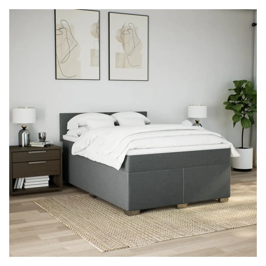 Sommier à lattes de lit avec matelas Gris foncé 140x190cm Tissu