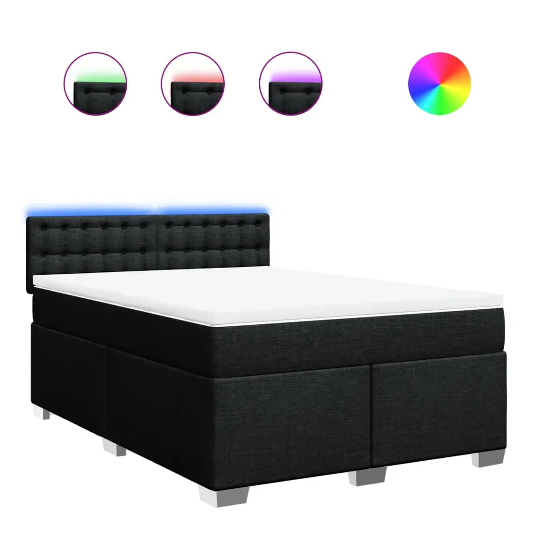 Utilisez ce lit à sommier pour profiter d'une nuit de sommeil réparatrice ! Il vous offre une relaxation maximale et un sommeil agréable. Matériau doux et durable : le tissu en polyester allie douceur, respirabilité et durabilité, vous garantissant un confort et une convivialité ultimes.Matelas à ressorts ensachés : ce matelas à ressorts ensachés comporte des ressorts ensachés individuels qui fonctionnent indépendamment pour offrir un soutien personnalisé en réagissant uniquement à la pression exercée dans chaque zone. Cette conception empêche « l'enroulement » et réduit le transfert de mouvement par rapport aux matelas traditionnels à ressorts ouverts. Chaque ressort ensaché soutient le corps individuellement.Lumières LED pour une ambiance agréable : ce lit est équipé de lumières LED qui peuvent être facilement réglées pour créer un spectacle lumineux personnalisé. Vous pouvez personnaliser les modes, les couleurs et la luminosité pour améliorer l'ambiance de votre espace intérieur.Surmatelas confortable : ce surmatelas améliore le soutien et le confort grâce à sa surface douce et respirante, tout en prolongeant la durée de vie de votre matelas. Sa housse amovible permet un lavage facile, ce qui facilite l'entretien. Bon à savoir :Ce produit est doté d'un connecteur USB qui nécessite une source d'alimentation USB de 5V certifiée (non incluse).Pour des raisons d'hygiène, le matelas ne peut pas être retourné si l'emballage est retiré ou ouvert.Seule la partie avec un symbole de ciseaux peut être coupée et seule la partie avec l'USB continuera à fonctionner comme avant.