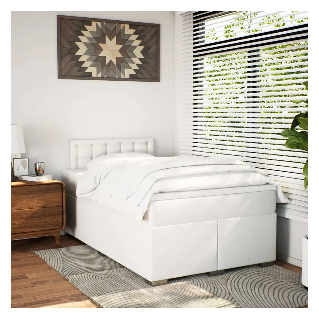 Sommier à lattes de lit avec matelas Blanc 120x200cm Similicuir